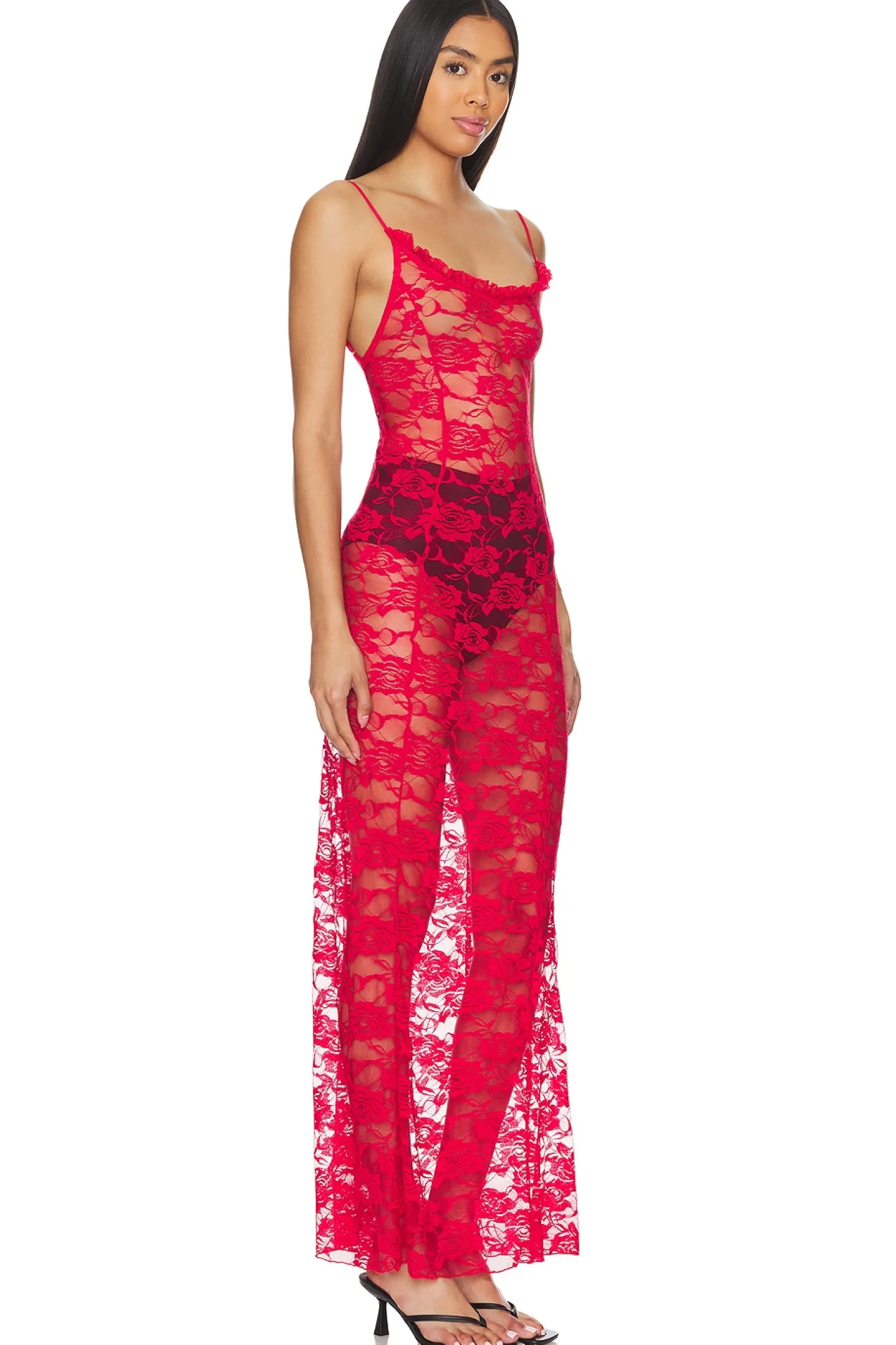 90% nylon 10% spandex.Made in Indonesia.Machine wash.Unlined.Pull-on styling.Lightweight lace fabric.Garment is intentionally sheer, undergarments will show through. Please note undergarment not included