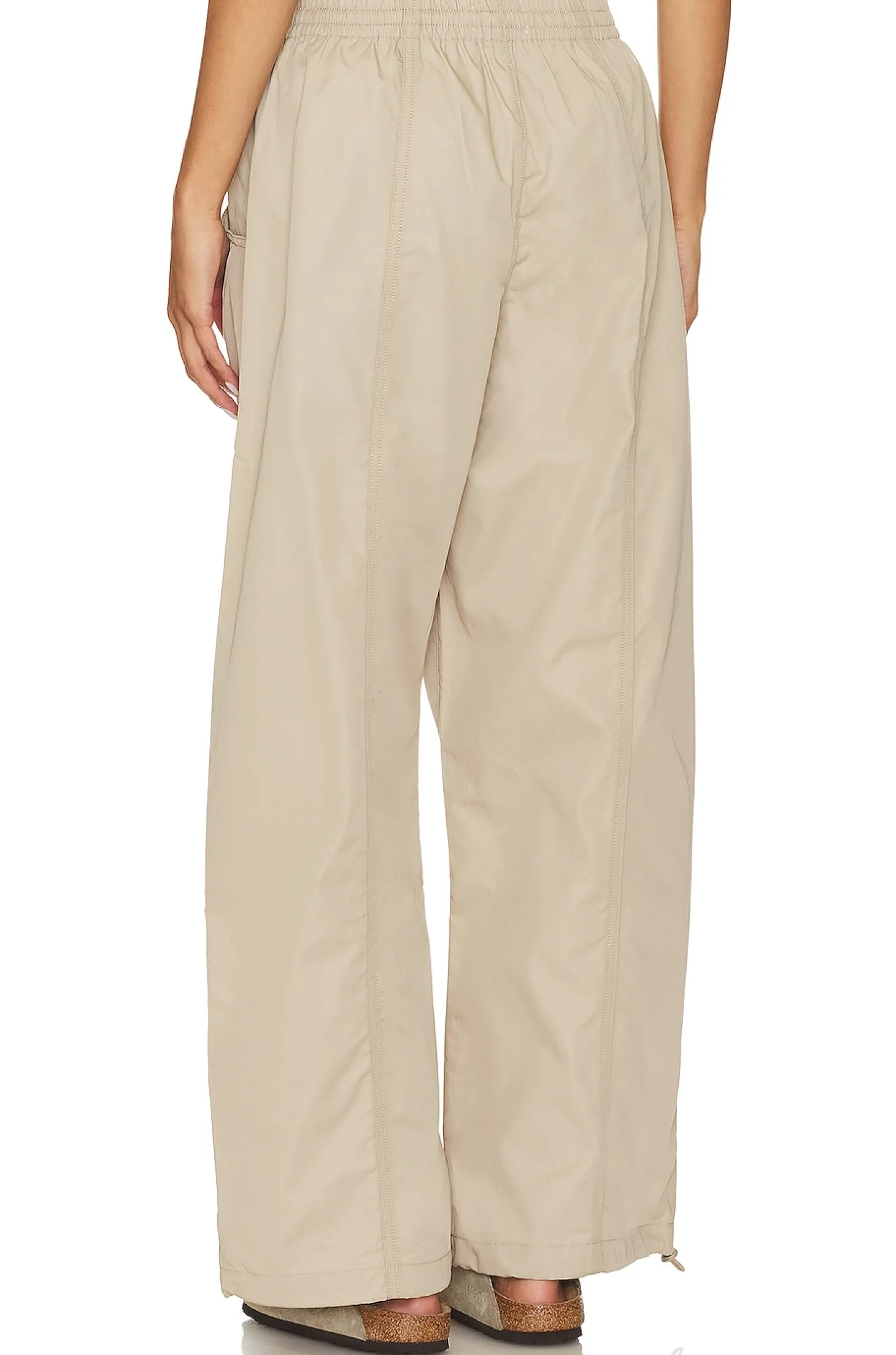 100% cotton.Made in USA.Machine wash.Pull-on styling with elastic waistband and interior drawstring tie closure.Side slant pockets.Toggle drawcord at cuffs.Lightweight ripstop twill fabric.20" at the knee narrows to 18" at the leg opening