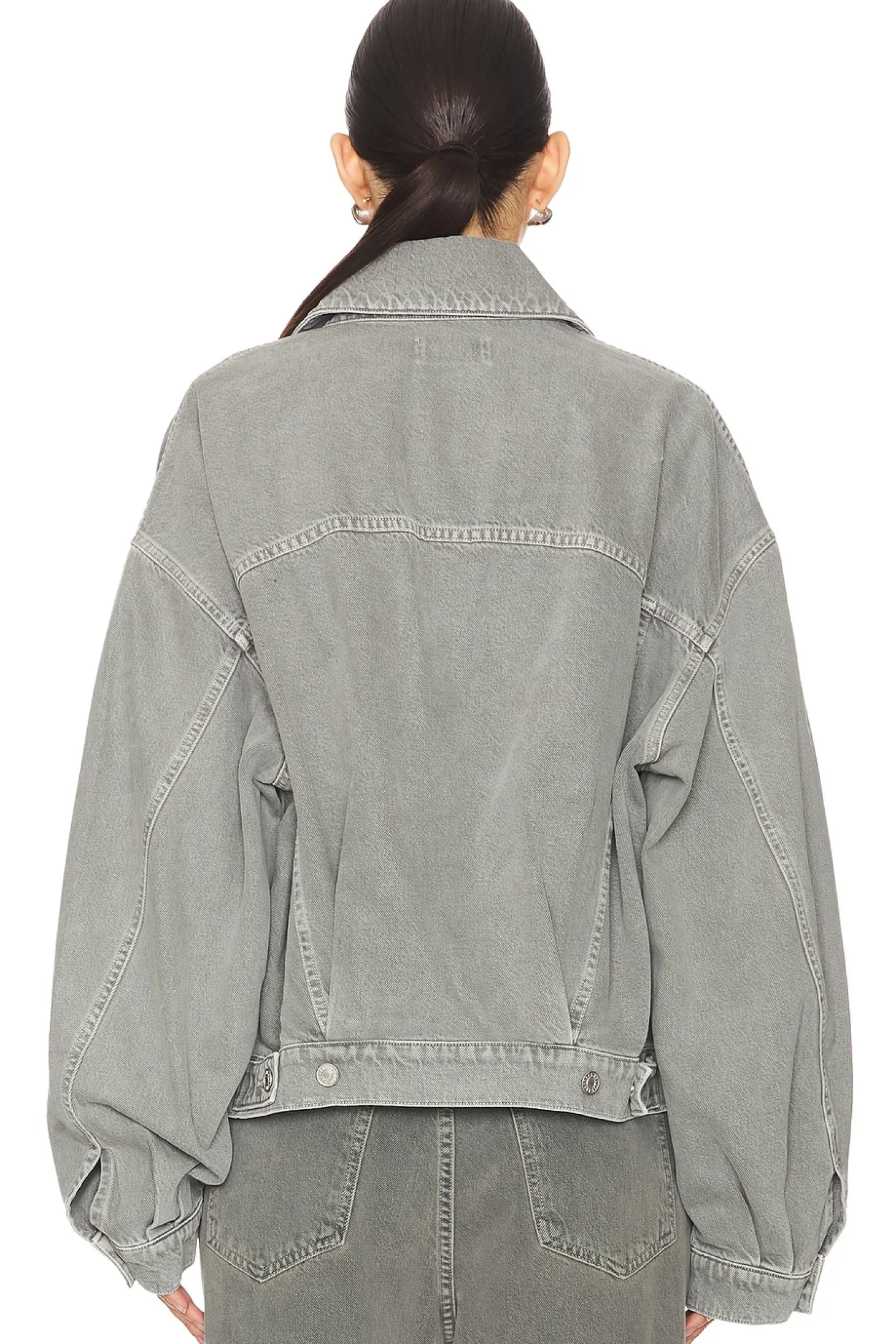 100% regenerative cotton.Made in USA.Machine wash.Front button closure.Front flap pockets at breast and side seam pockets.Buttoned cuffs.Denim fabric