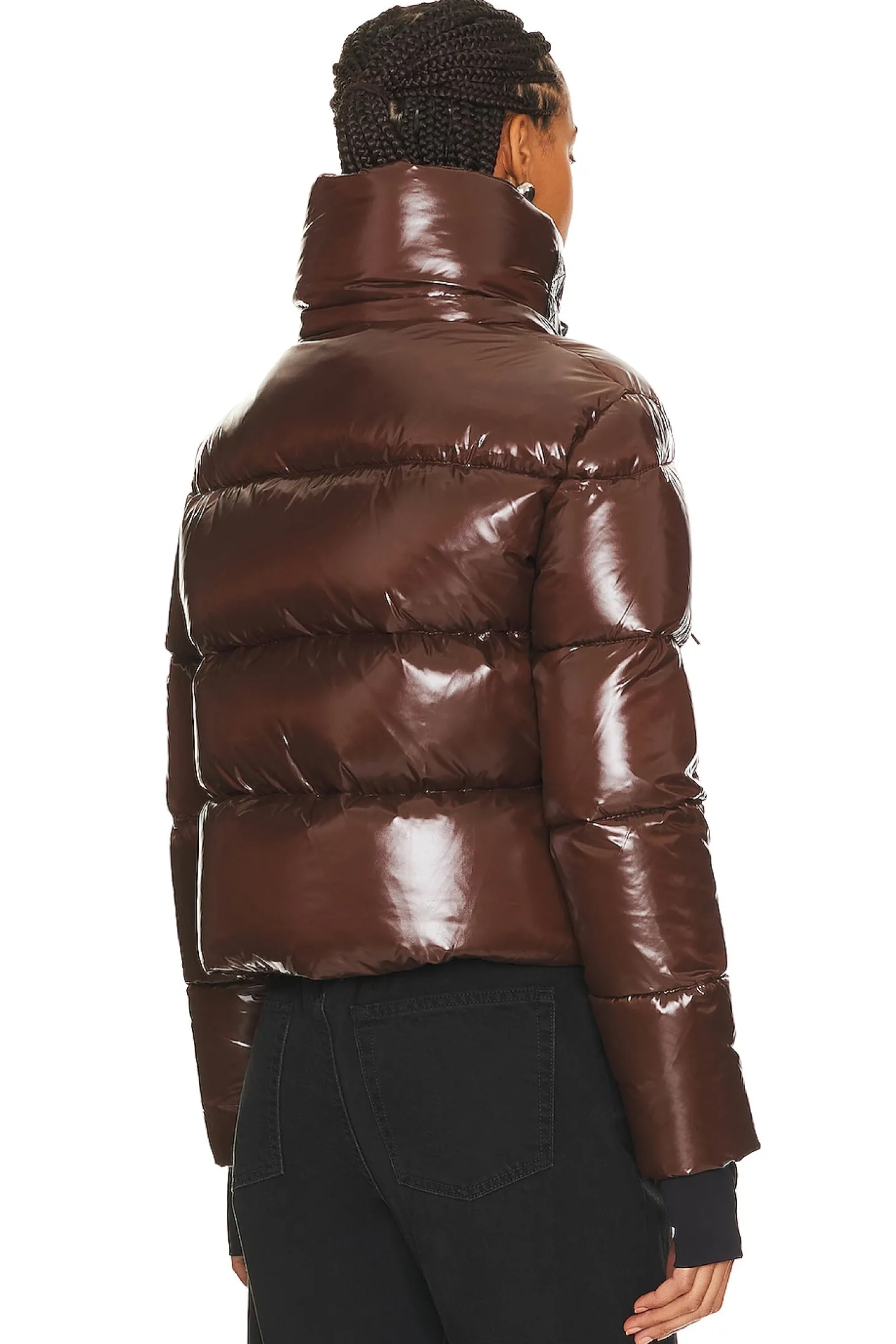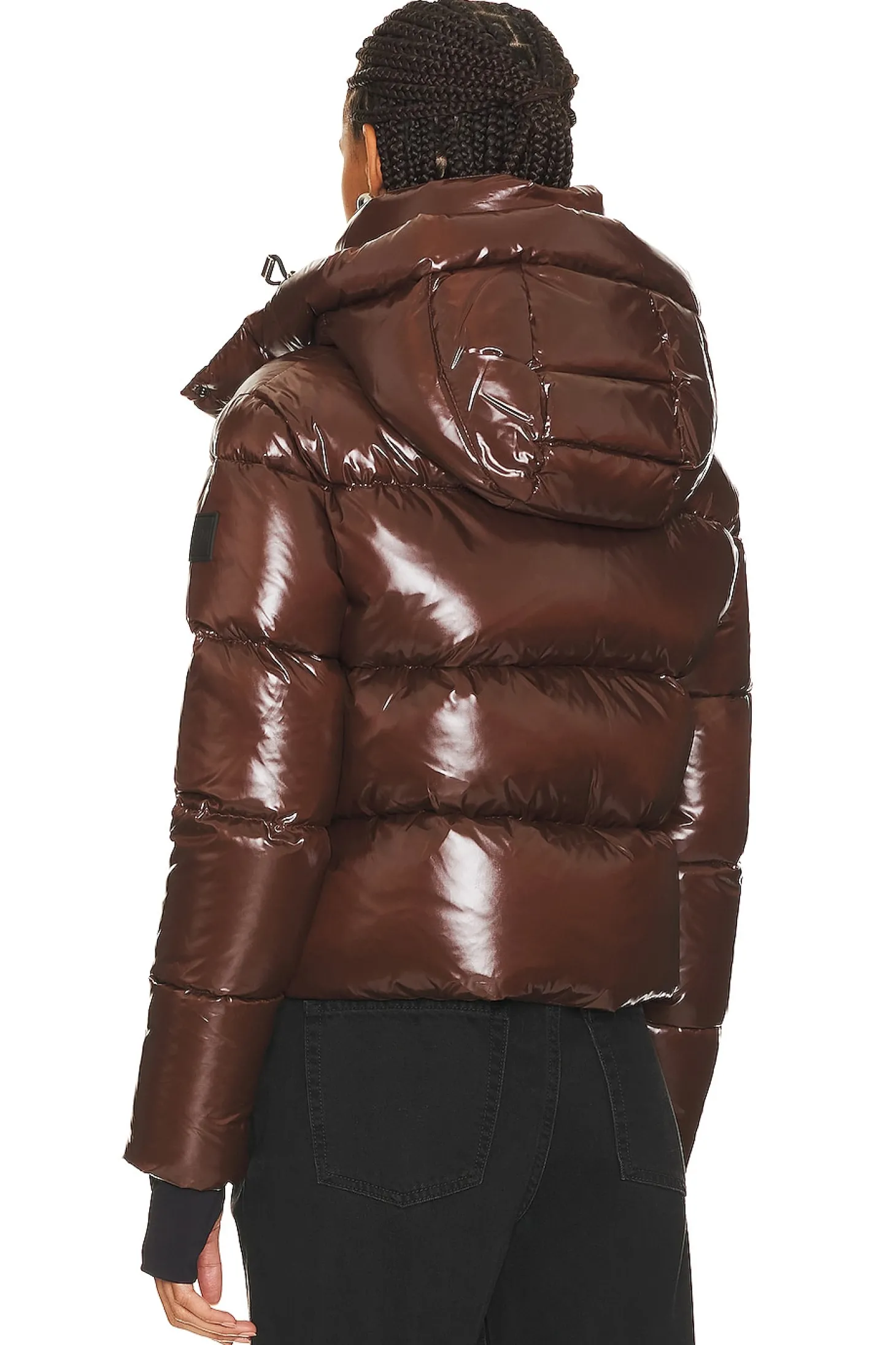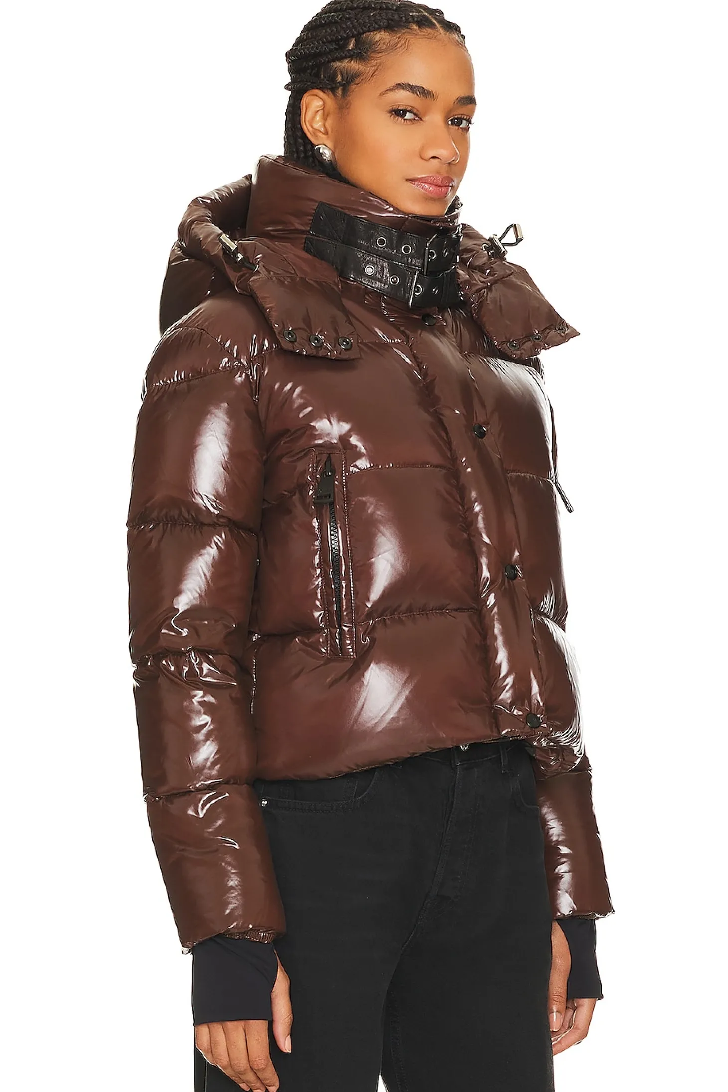 Self & Lining: 100% nylon Collar Lining: 100% polyurethane Fill: 90% duck down 10% feathers Faux Fur: 100% polyester Trim: 100% leather.Made in Vietnam.Spot clean only.Front zipper closure.Detachable drawcord hoodie.Faux fur lining at collar.Thumbhole design.Side seam zipper pockets Midweight padded ripstop fabric