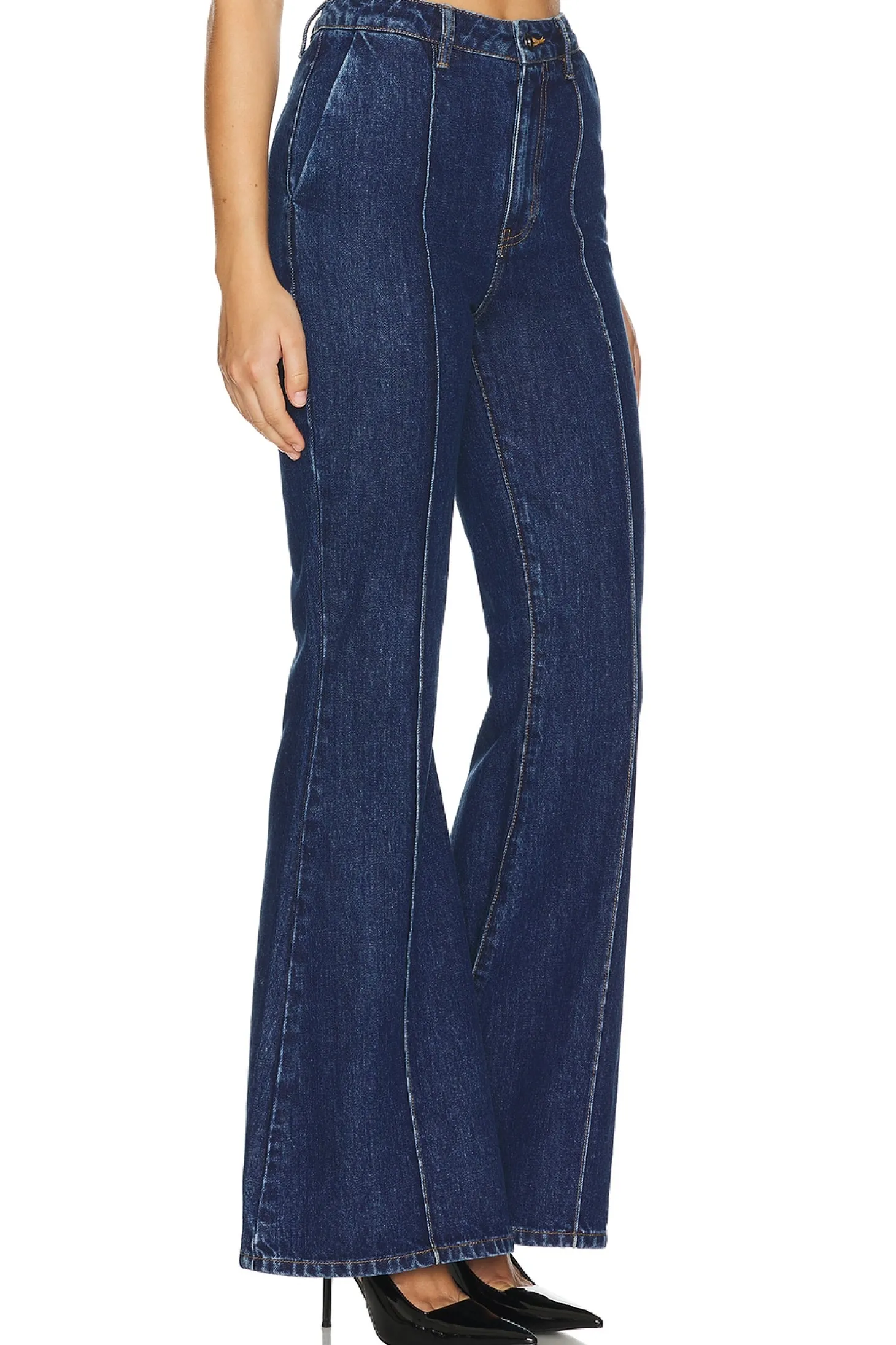Denim textile.Made in China.Machine wash recommended.Top: Front button closure Front pocket styling.Bottom: Zip fly with button closure 4-pocket styling.Item sold as a set.8.5" at the knee and 13" at the leg opening