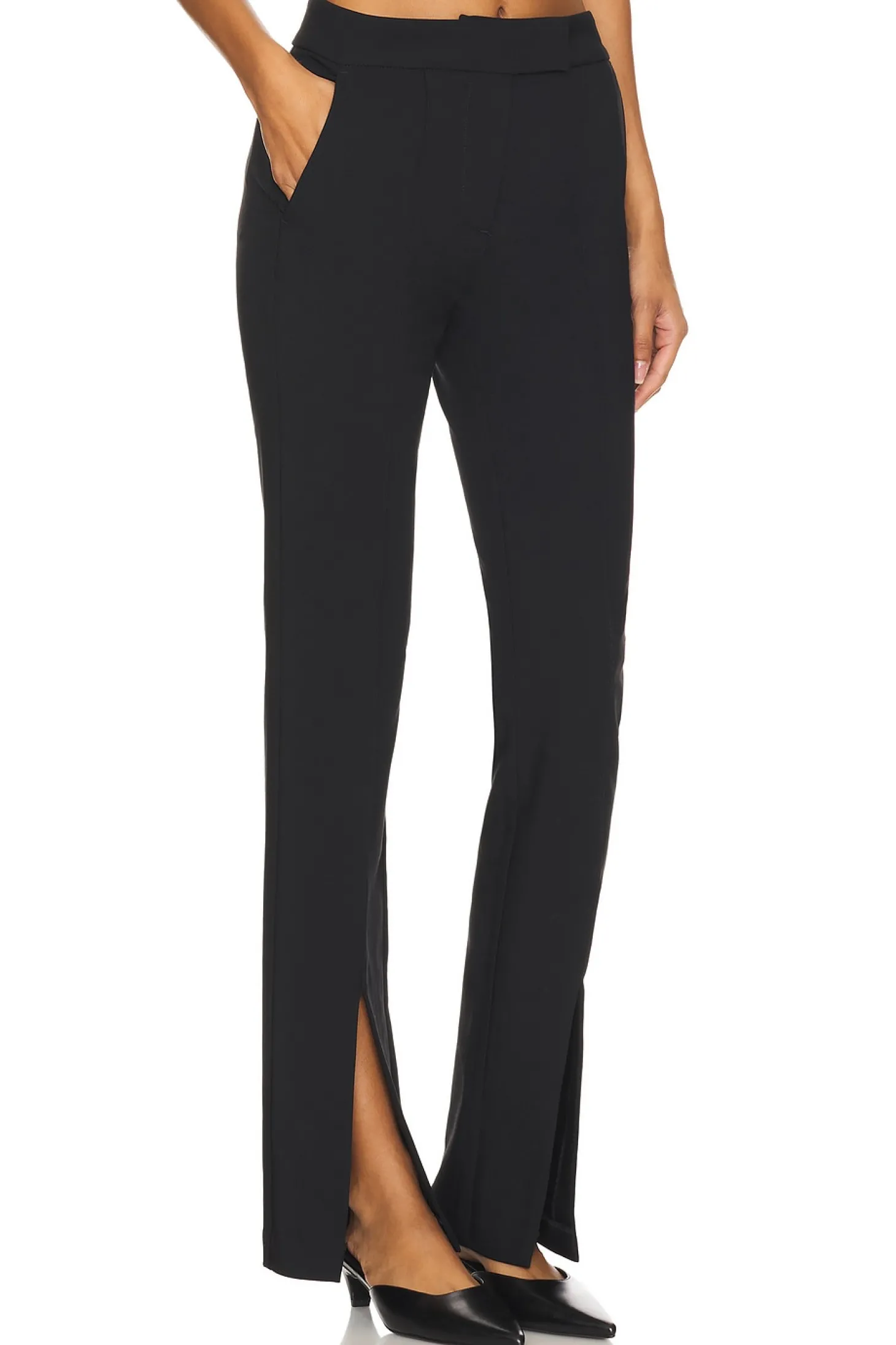 76% polyester 19% rayon 5% spandex.Made in China.Machine wash.Zip fly with hook and bar closure.4-pocket design.Pintuck detail.Twill fabric with split hem.14" at the knee breaks to 16" at the leg opening