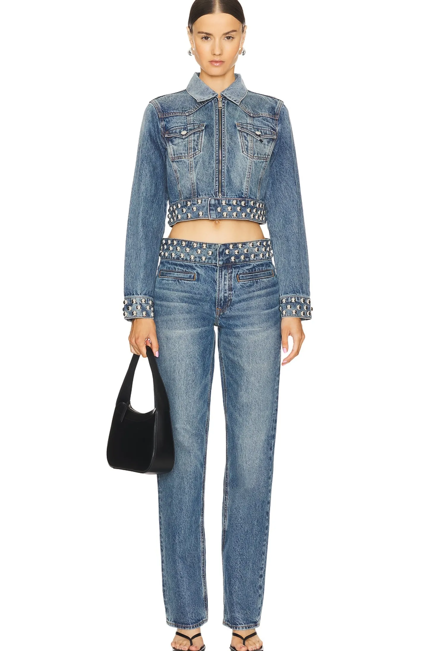 100% cotton.Made in China.Machine wash.Front zipper closure.Front flap pockets.Silver-tone hardware accent at hem at trim.Cropped fit design.Item not sold as a set