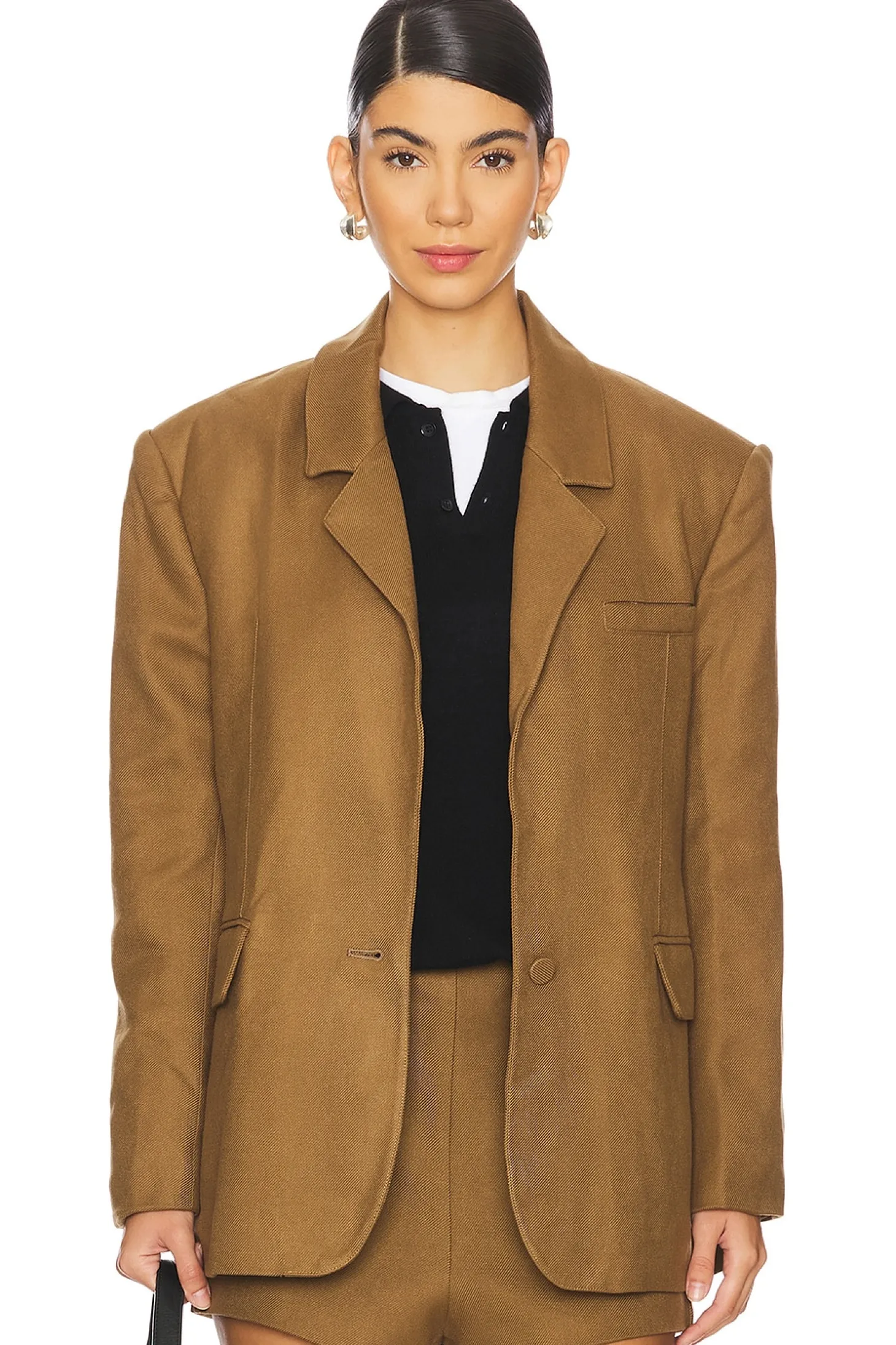 64% polyester 18% viscose 18% wool.Made in China.Dry clean only.Single breasted closure.Front flap pockets and single breast pocket.Buttoned cuffs.Twill fabric with padded shoulders.Item not sold as a set