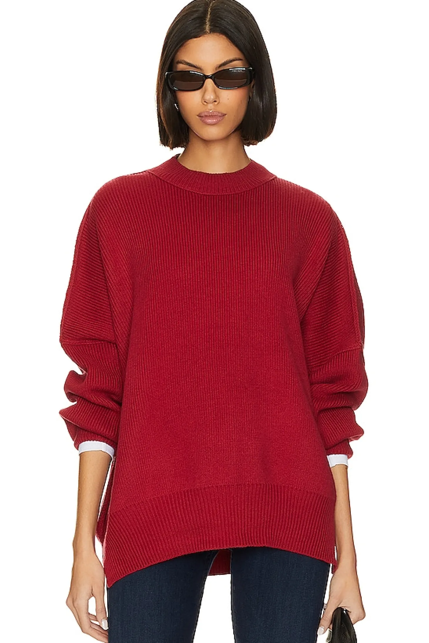 Knit textile.Imported.Hand wash recommended.Ribbed trim.Notched hem.Midweight knit fabric