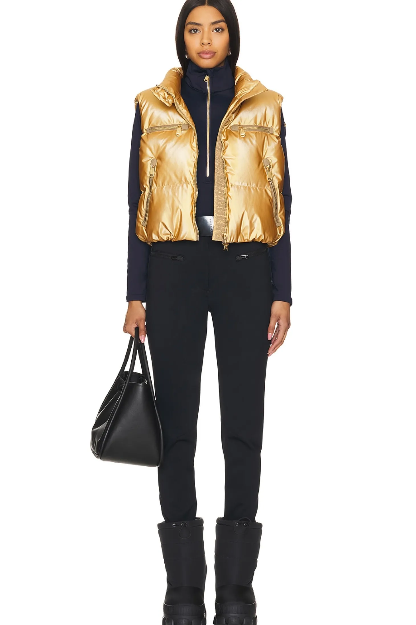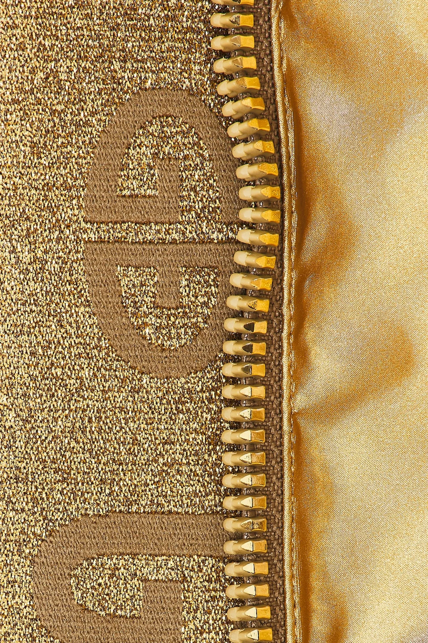 Metallic ripstop textile.Imported.Machine wash recommended.Front zipper closure.Side slant zipper pockets.Mockneck styling.Midweight padded fabric