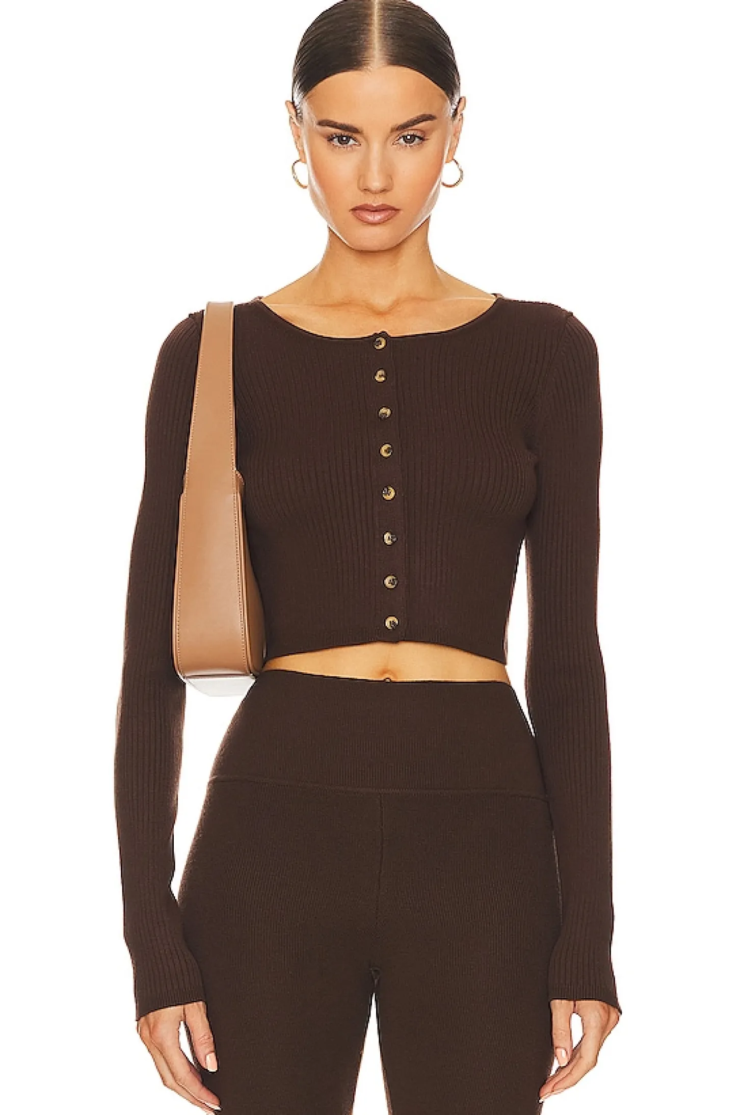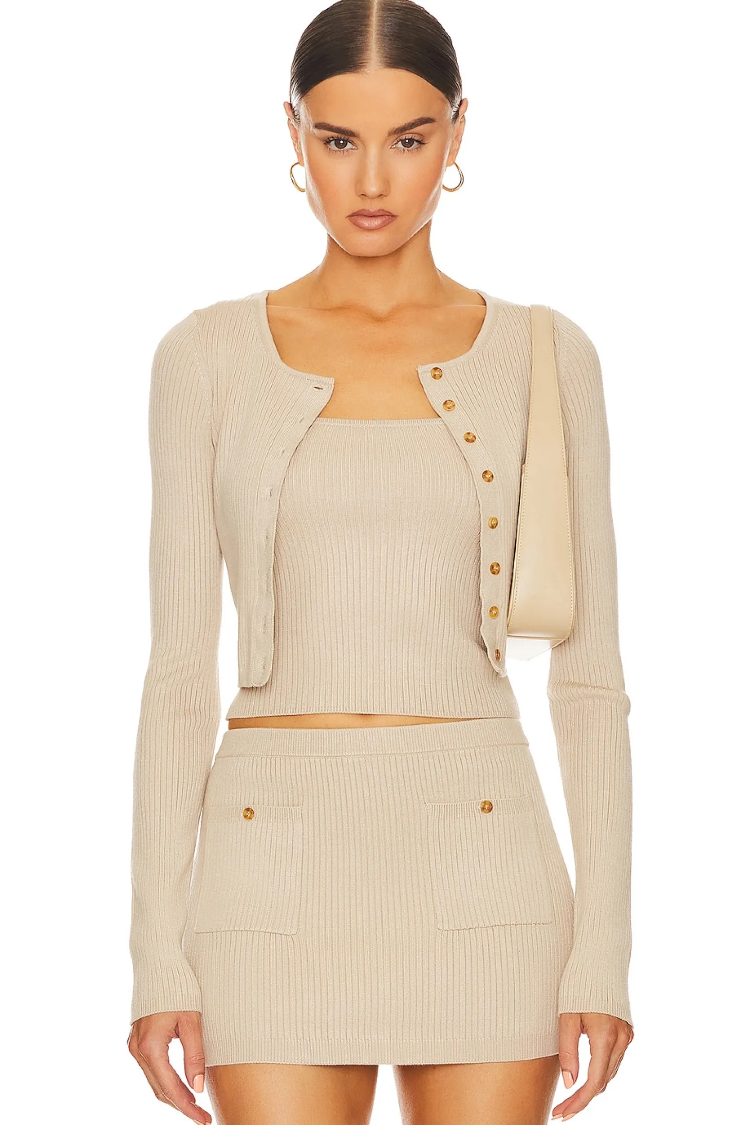 62% lenzing™ ecovero™ viscose 24% polyester 14% nylon.Made in China.Hand wash.Front button closure.Lightweight ribbed knit fabric.Item not sold as a set