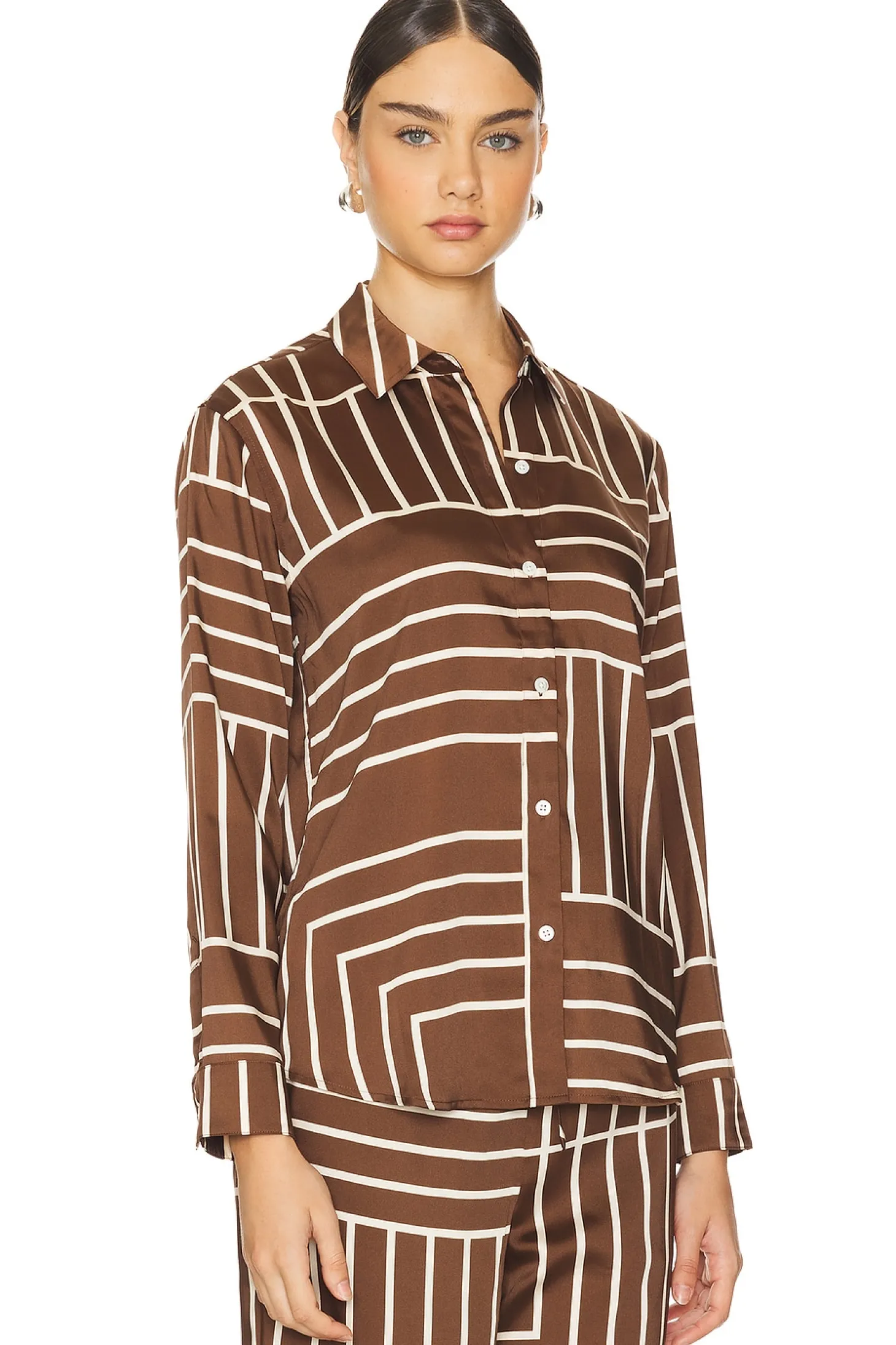100% polyester.Made in China.Dry clean only.Front button closure.Buttoned cuffs.Crepe fabric.Item not sold as a set