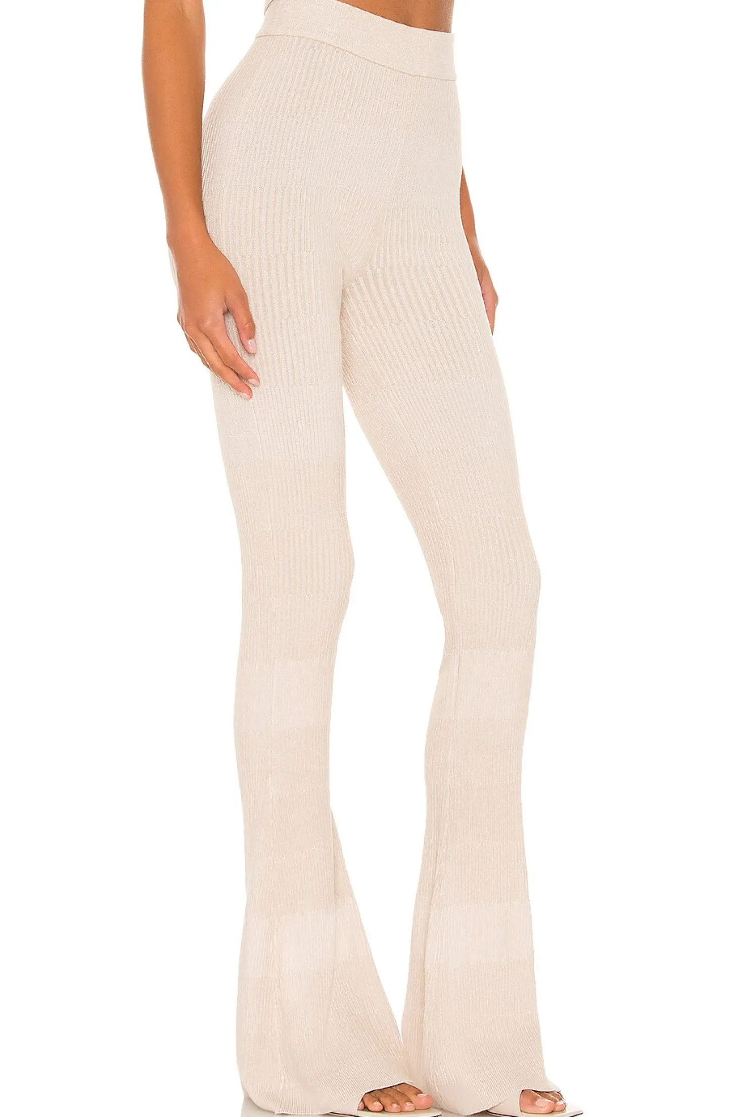 92% rayon 8% nylon.Made in China.Hand wash.Elastic waist.Midweight ribbed knit fabric.Item not sold as a set.10" at the knee breaks to 20" at the leg opening