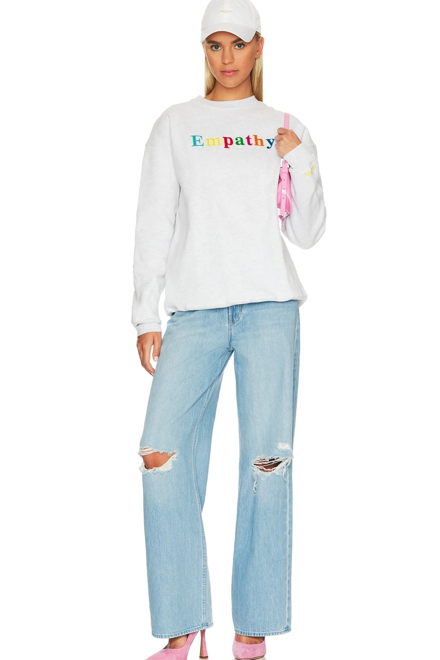 "Empathy".51.5% cotton 48.5% polyester.Made in China.Machine wash.Soft fleece lining