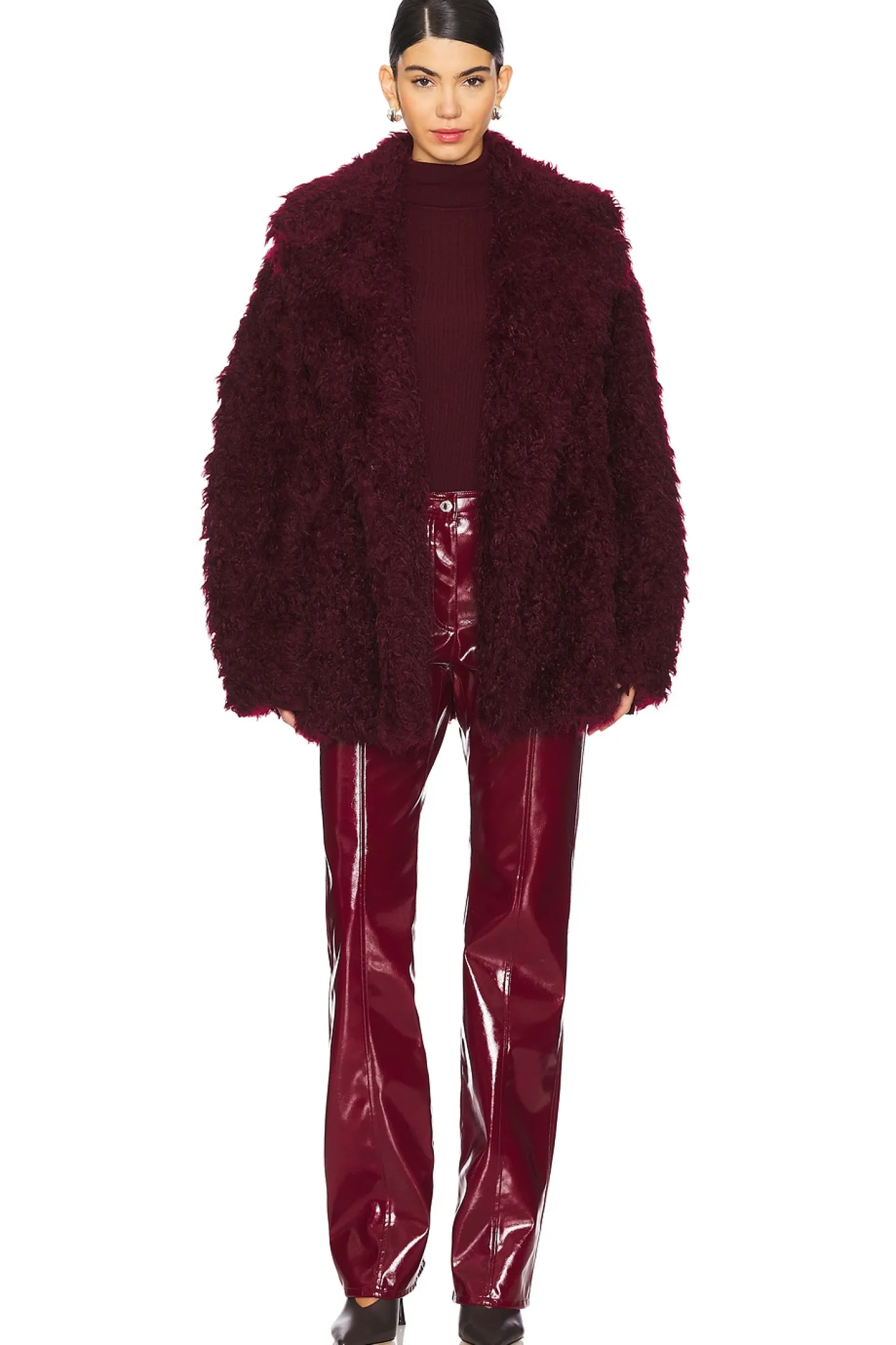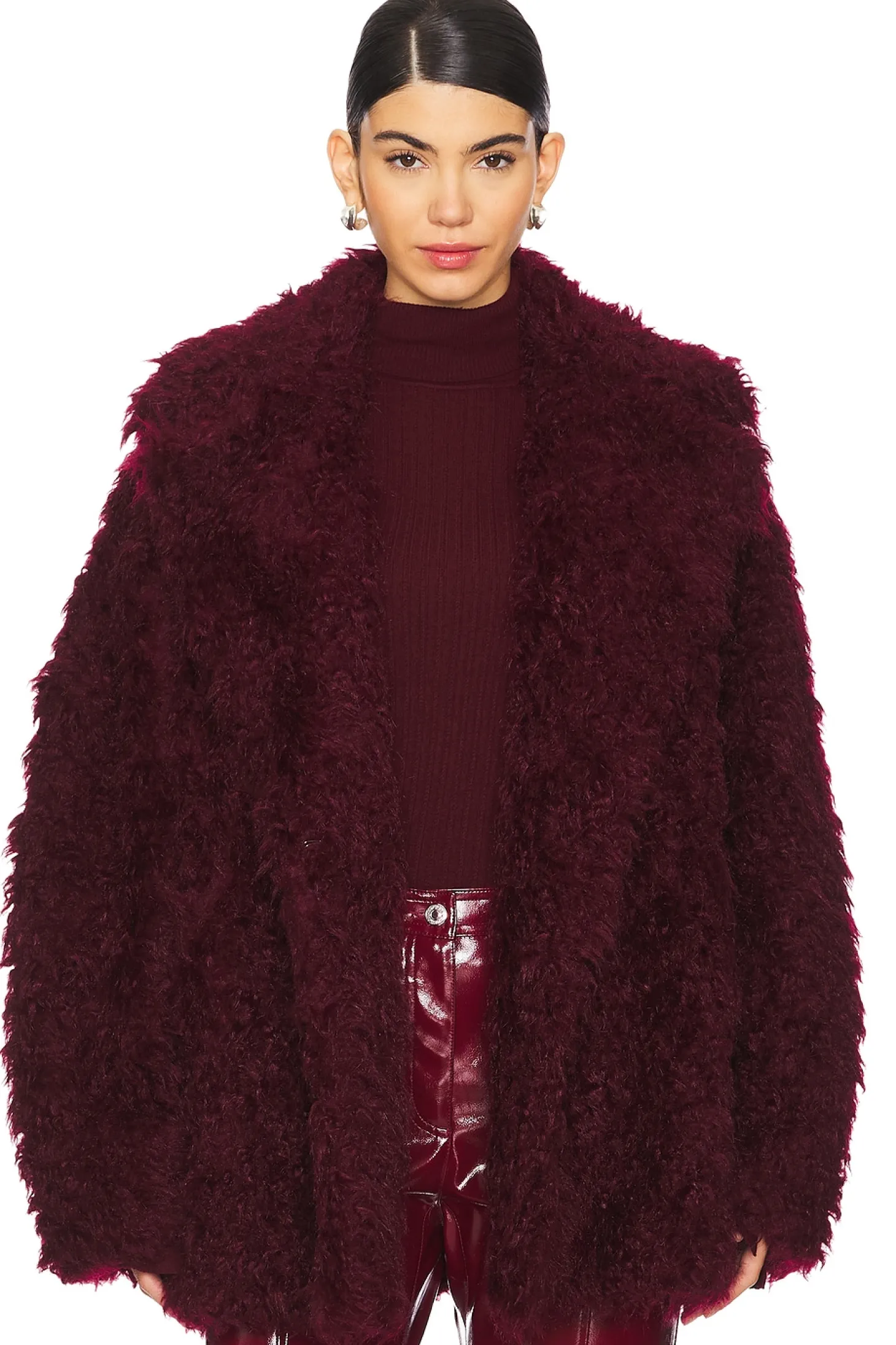 Faux fur: 57% modacrylic 25% acrylic 18% polyester Lining: 100% viscose.Made in Italy.Dry clean only.Front hook and eye closure.Side slant pockets.Faux fur fabric