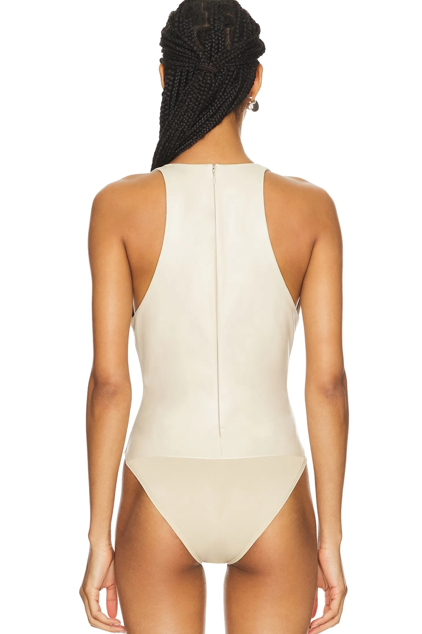 Self: 48% polyurethane 47% polyester 5% spandex Lining: 90% polyester 10% spandex Combo: 90% polyester 10% spandex.Made in China.Hand wash.Hidden back zipper closure.Snap gusset.Faux leather.Item not sold as set