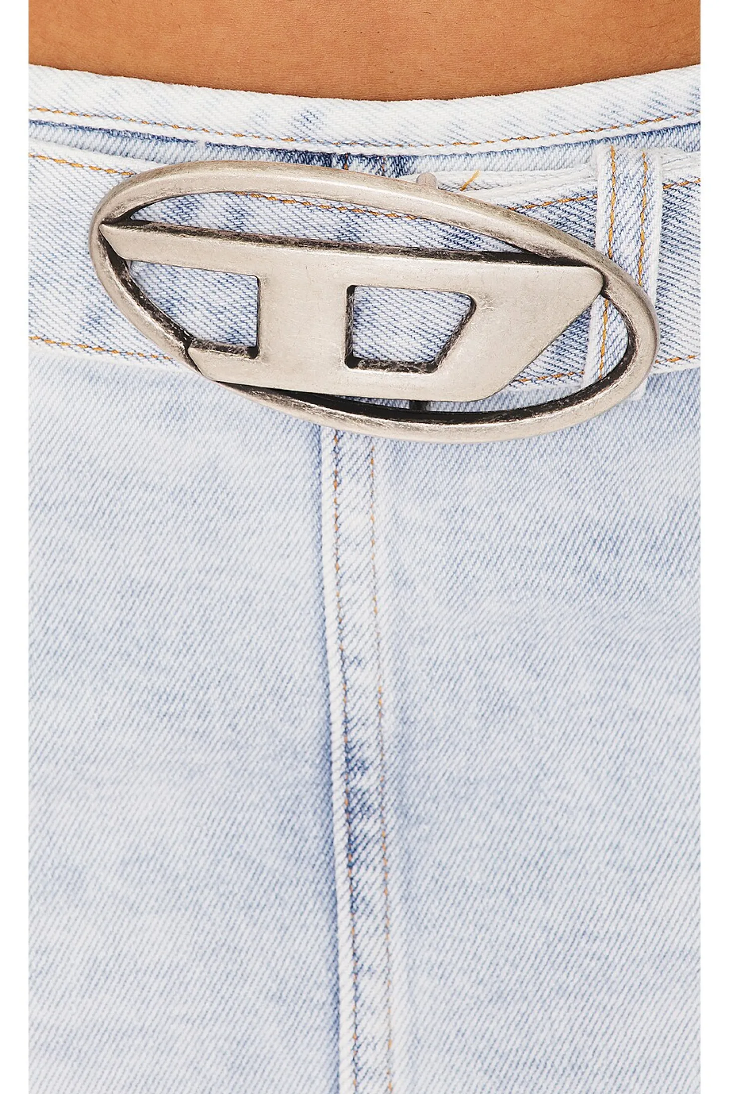 100% cotton.Made in Albania.Machine wash.Unlined.Exposed side zipper closure.Removable waist belt with push pin closure.Silver-tone logo hardware Item not sold as a set.Skirt measures approx 12" in length