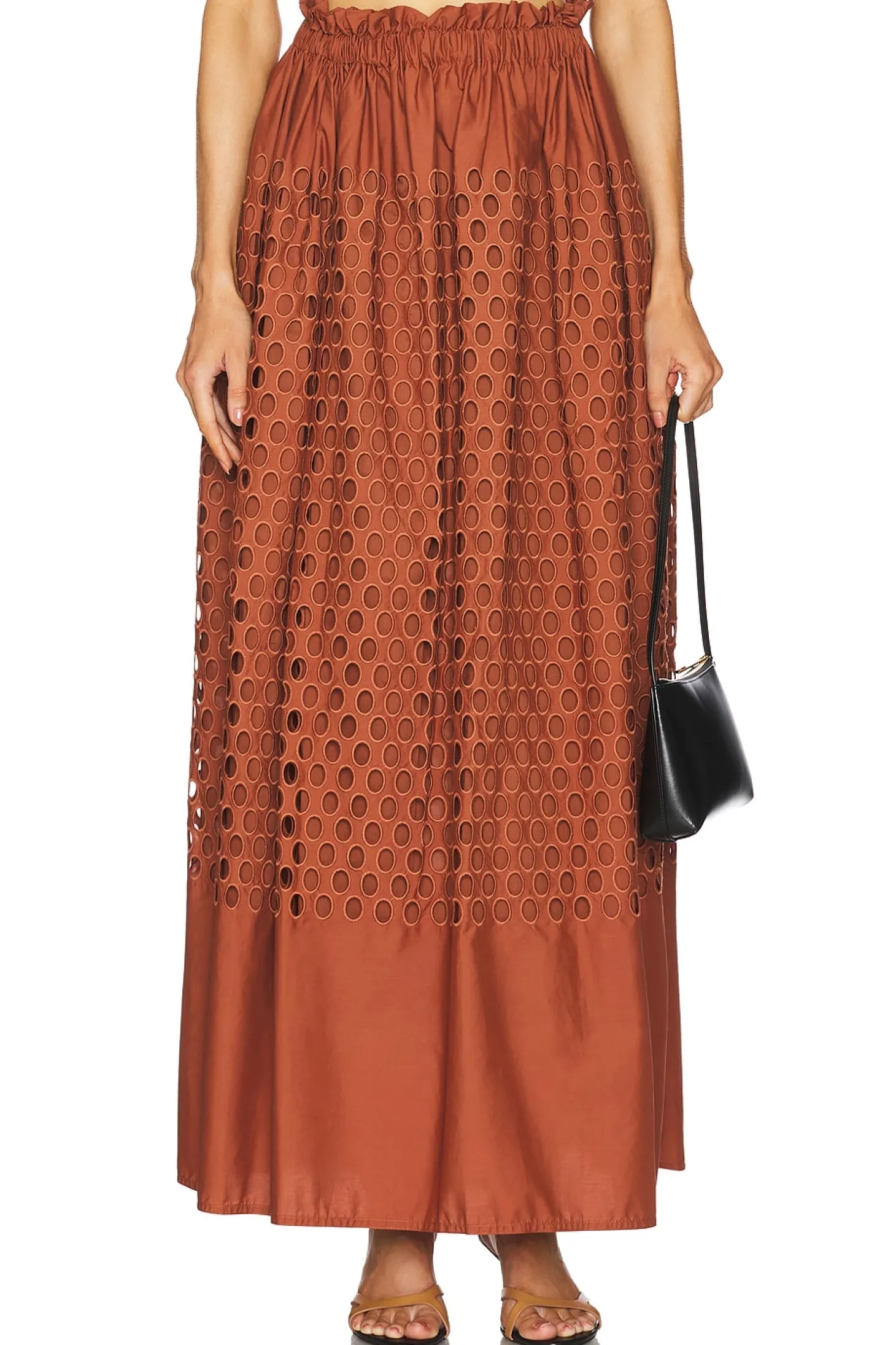 100% cotton.Made in China.Dry clean.Fully lined.Pull on styling.Item not sold as a set.Skirt measures approx 34" in length
