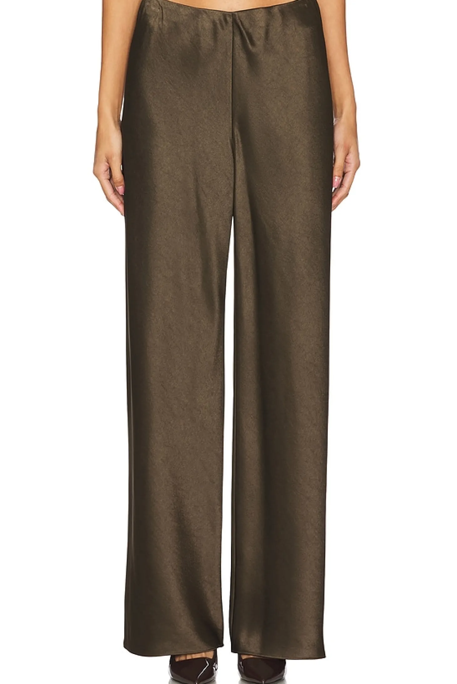 55% polyester 45% recycled polyester.Made in China.Machine wash.Pull-on styling with elastic waistband.Midweight satin fabric.18" at the knee and 18" at the leg opening