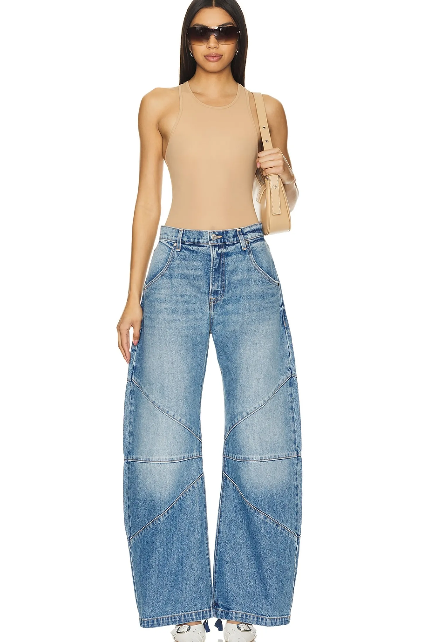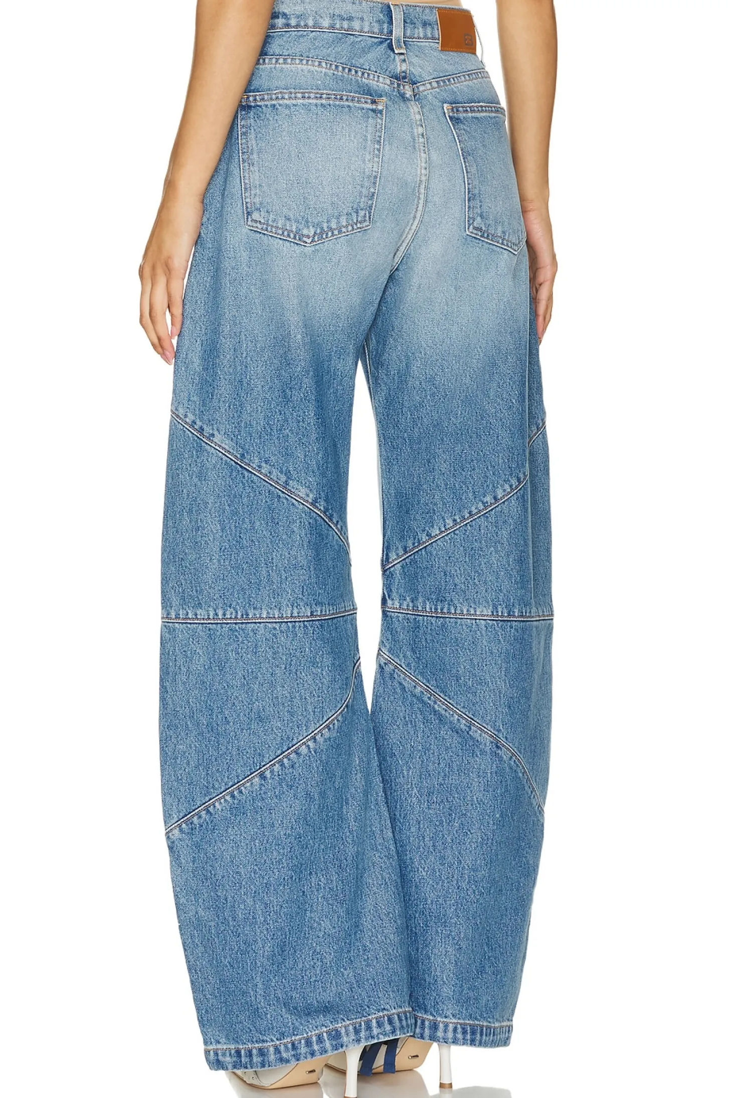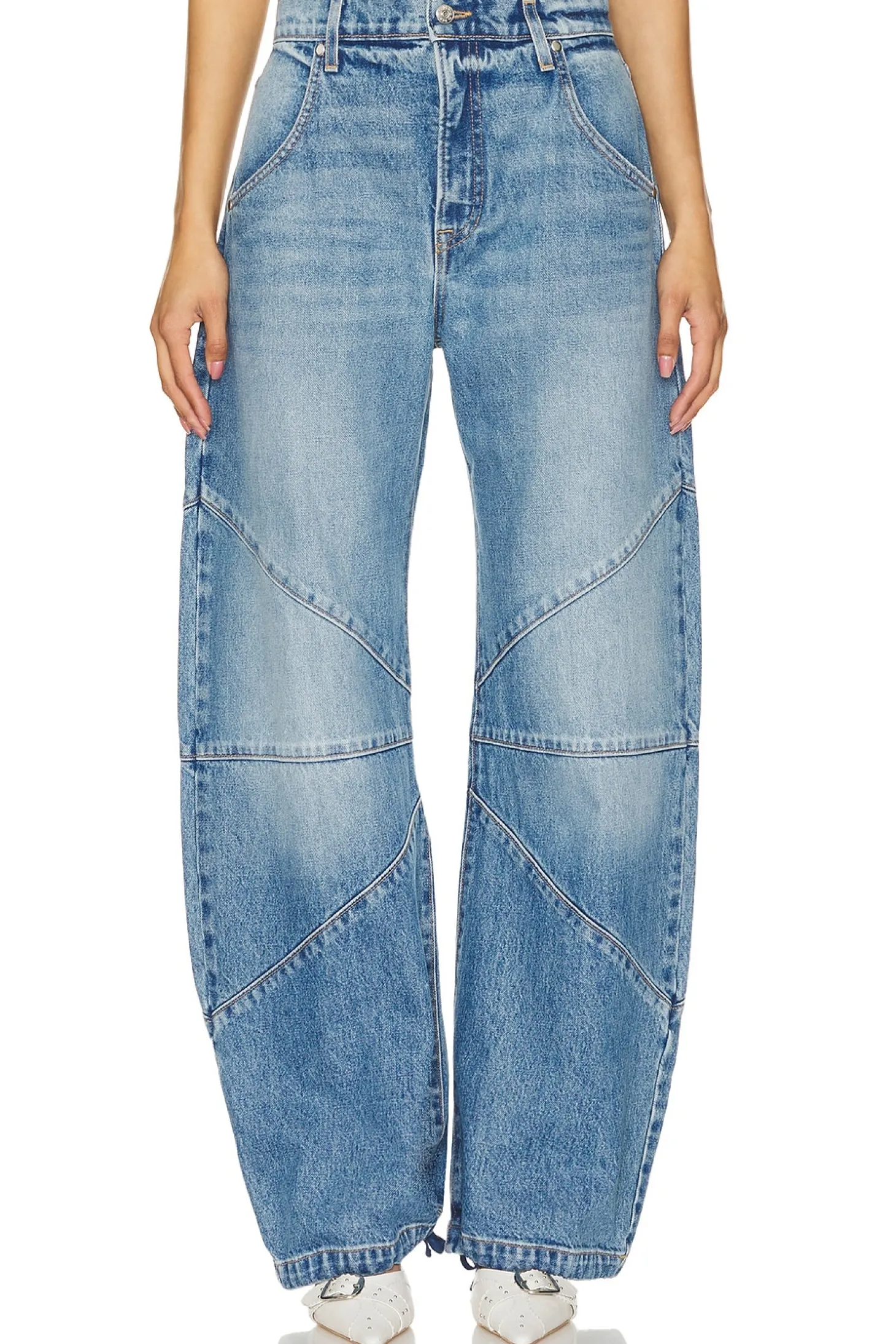 100% cotton.Made in USA.Machine wash.Zipper fly with button closure.Drawstring cuffs.22.5" at the knee narrows to 20" at the leg opening