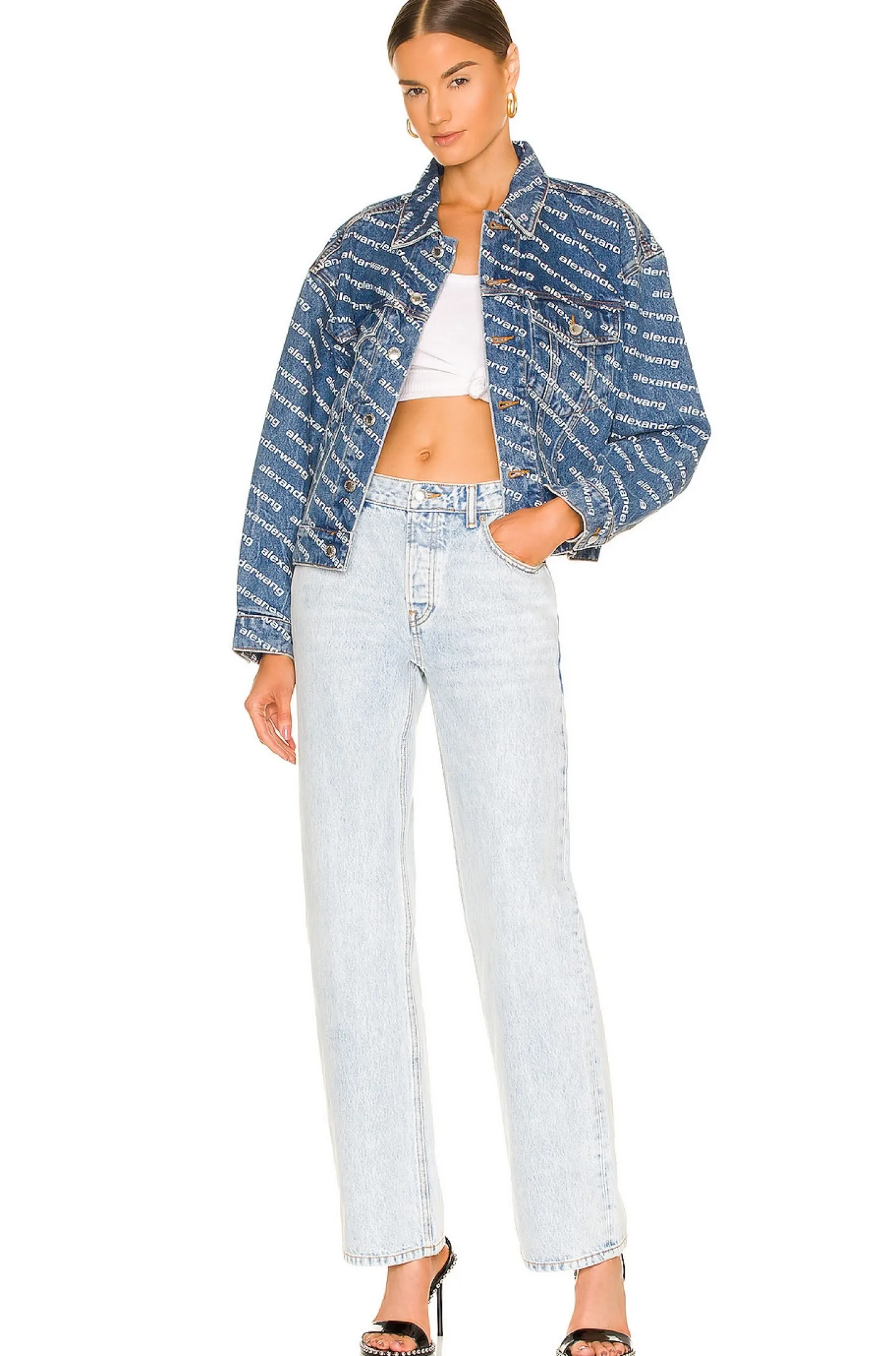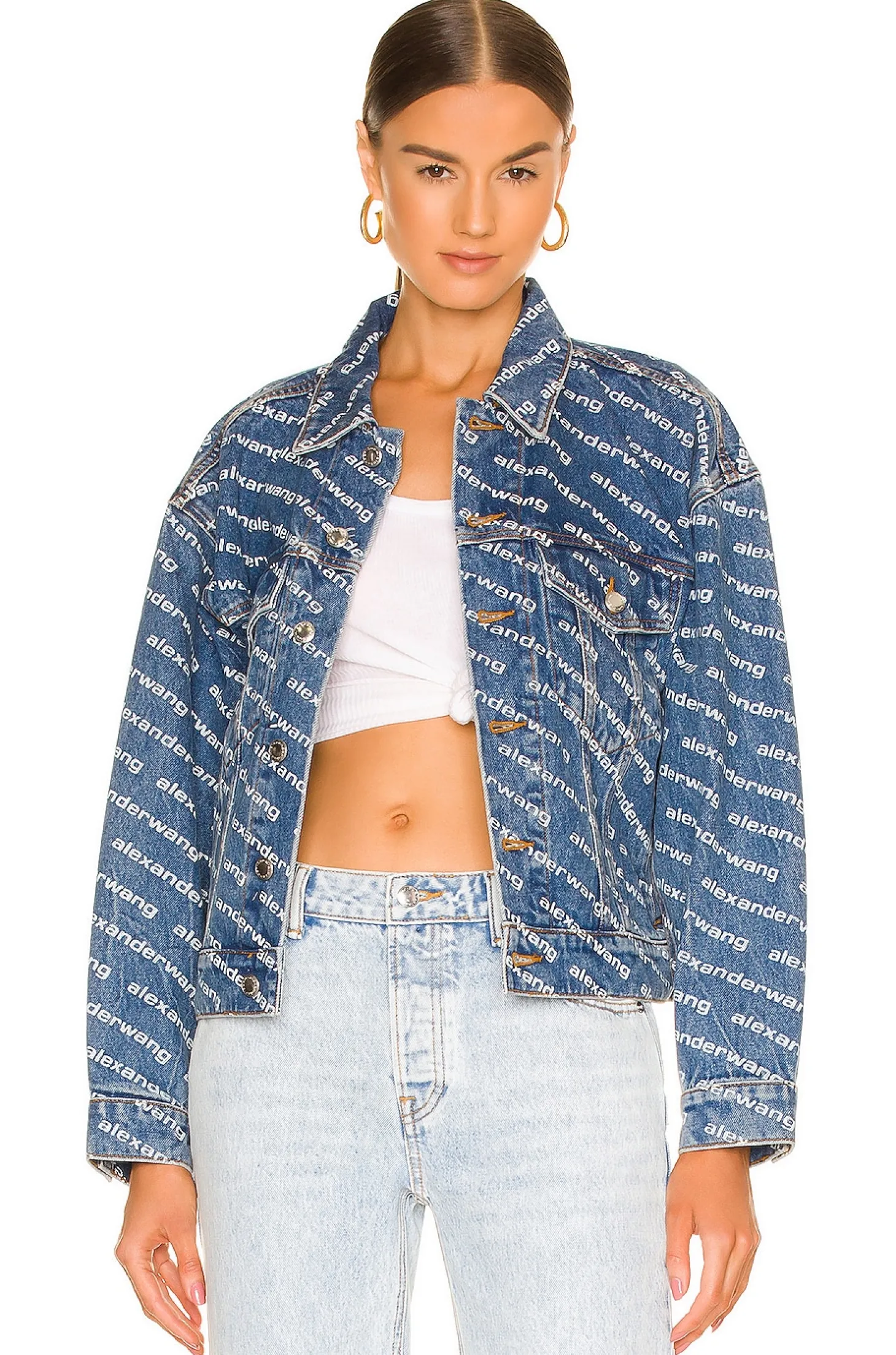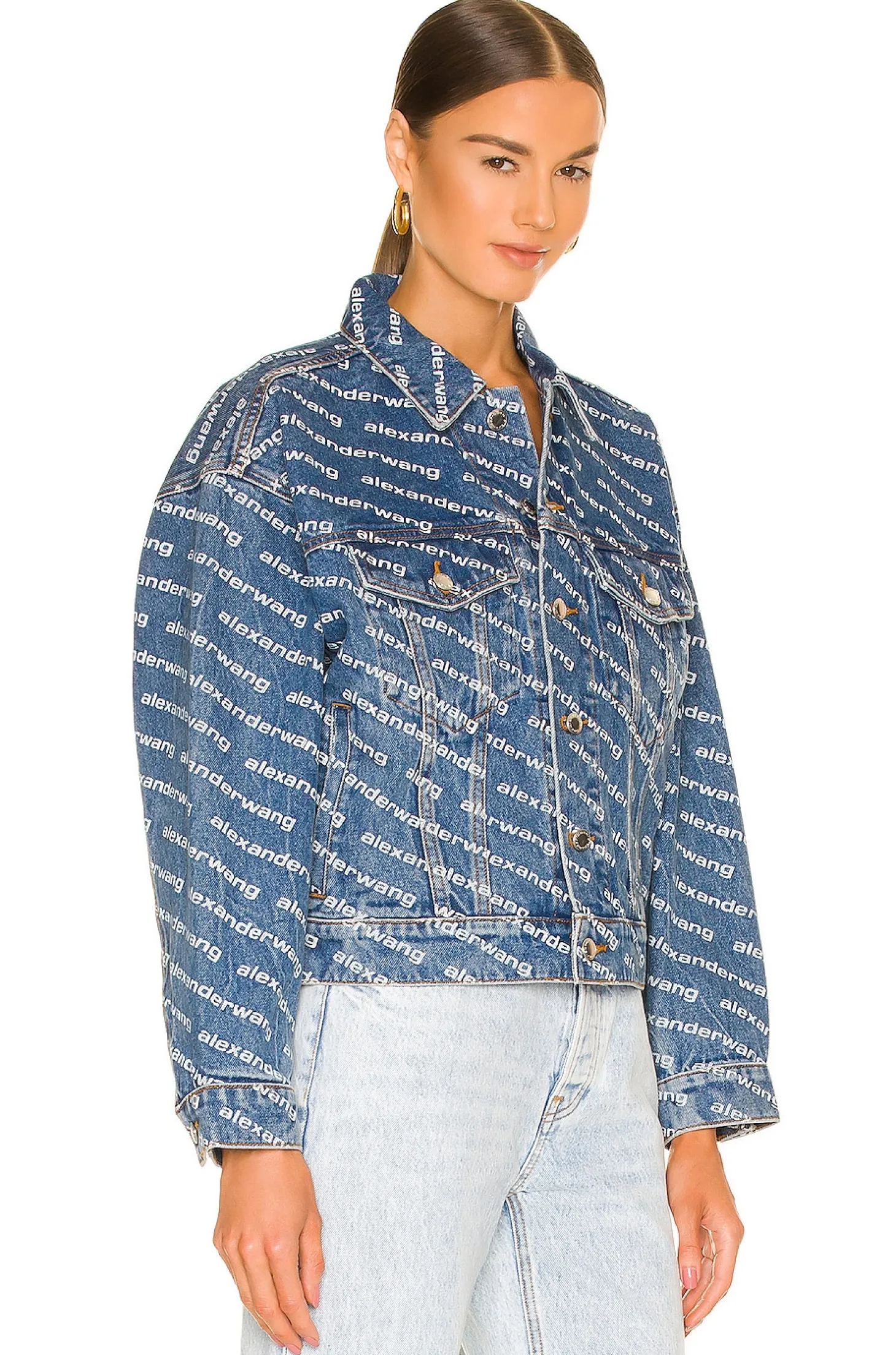 100% cotton.Made in China.Machine wash.Front button closure.Breast flap pockets with button closures.Side seam pockets Back logo patch.Buttoned cuffs."Alexander Wang" logo motif throughout