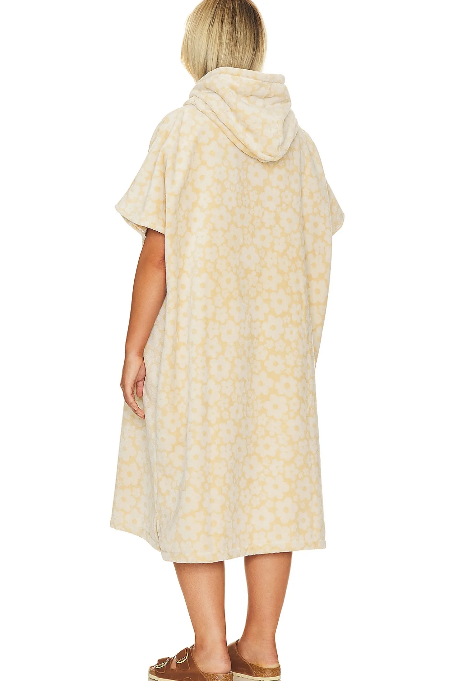 100% cotton.Made in China.Machine wash.Partial front button closure.Drawstring hood.Side slant pockets with button closure.Terrycloth fabric.Model 1 is wearing size S/M Model 2 is wearing size L/XL