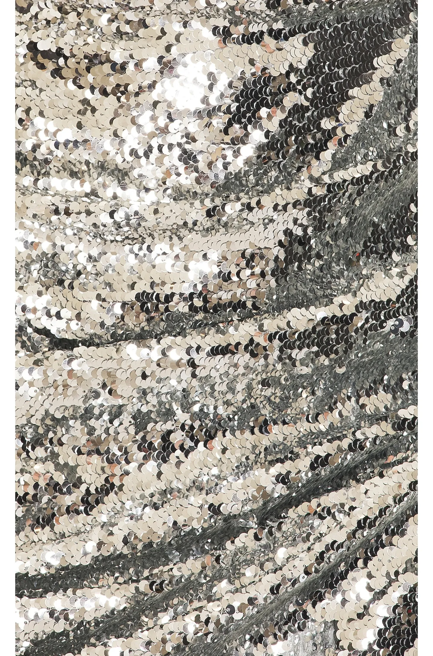 100% polyester.Made in Turkey.Dry clean only.Fully lined.Hidden back zipper closure.Ruched skirt with notched hem.Sequin embellishments throughout