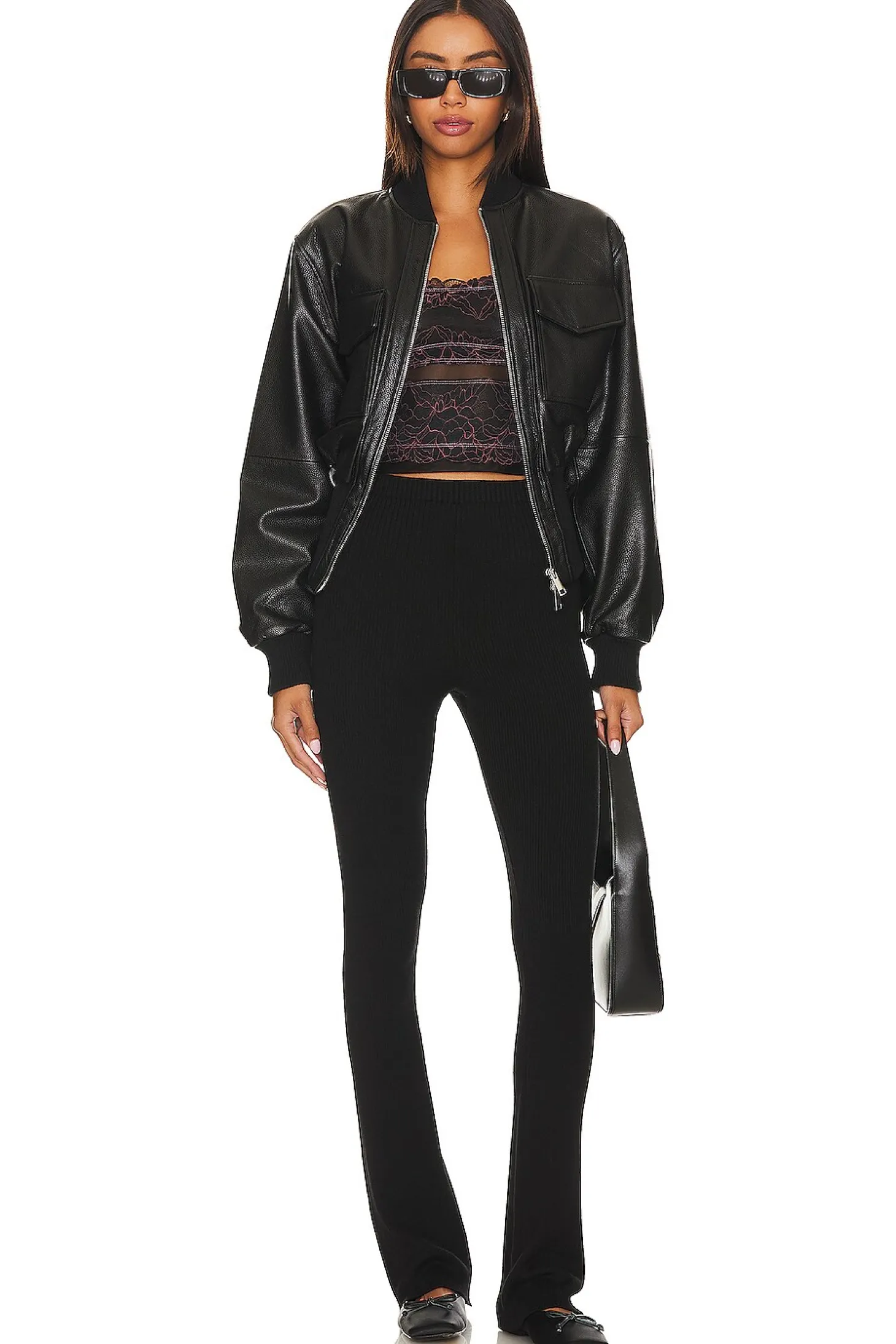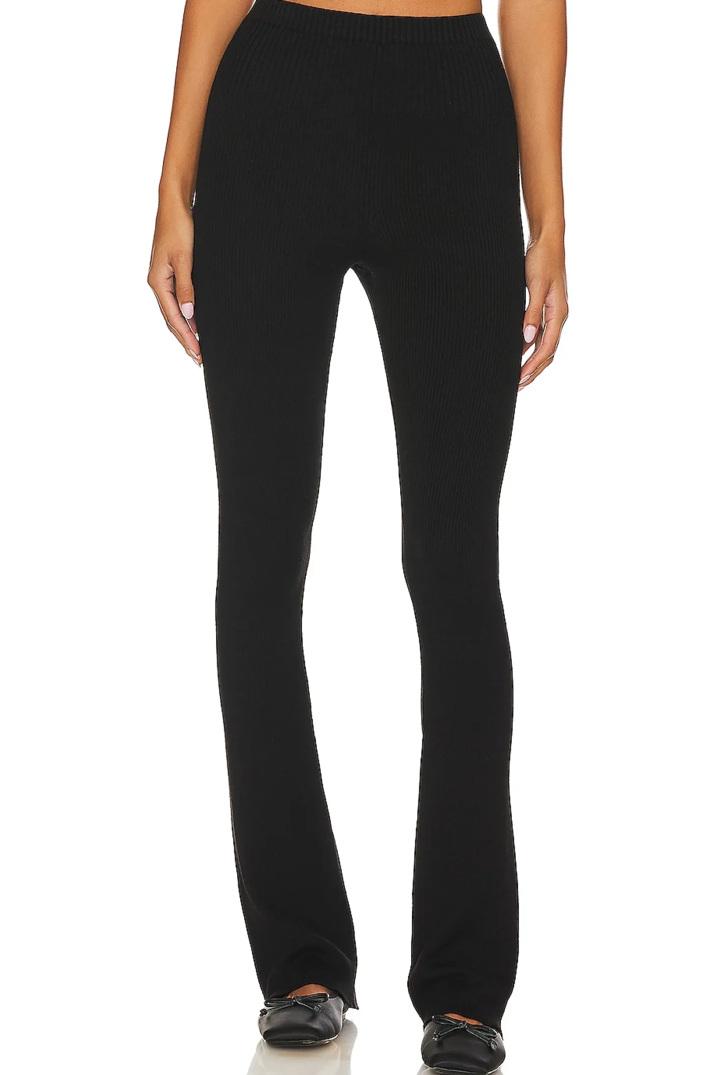80% viscose 20% cotton.Made in China.Hand wash cold.Pull-on styling with elastic waistband.Midweight ribbed knit fabric.12" at the knee breaks to 15" at the leg opening