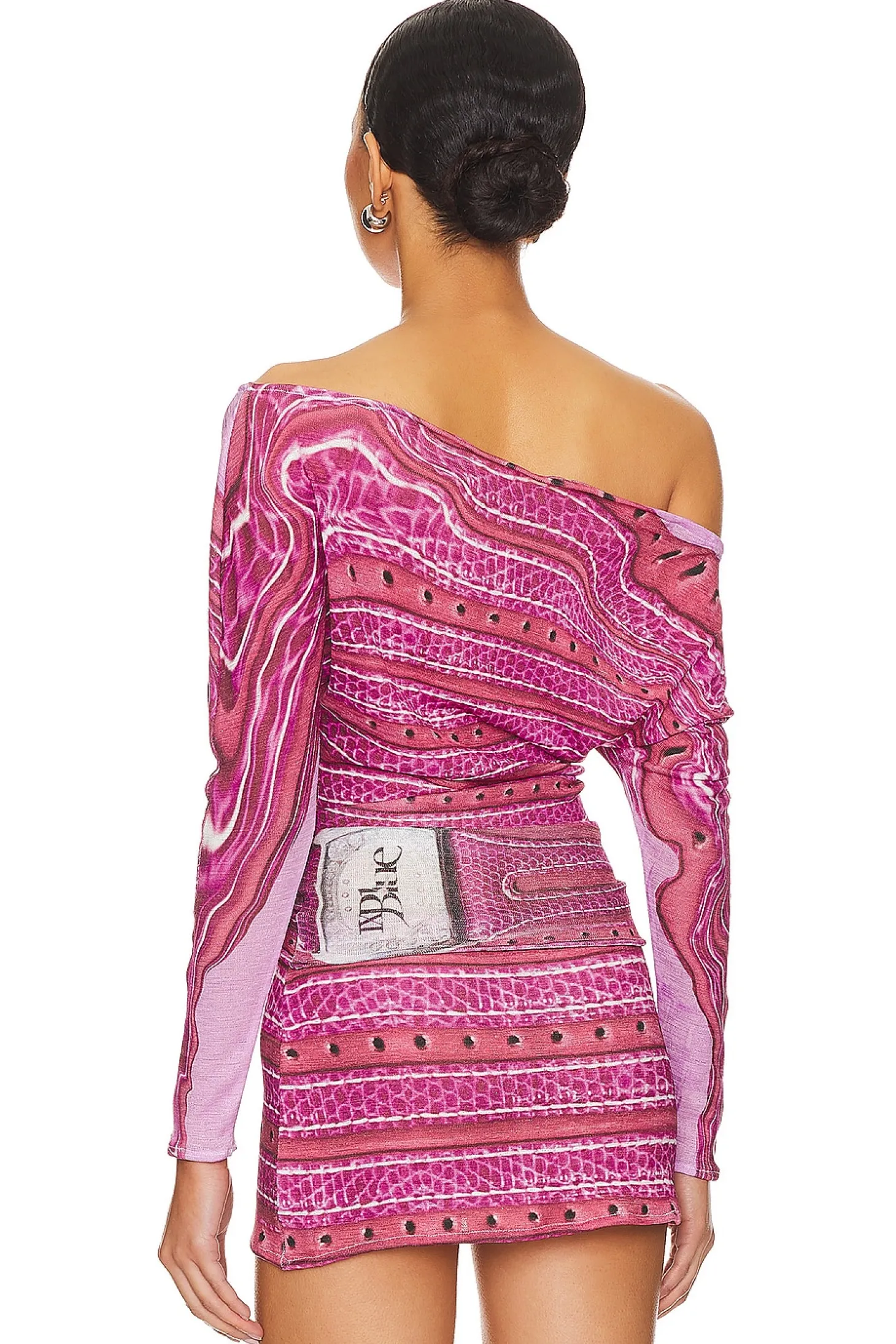 95% polyester 5% elastane.Made in United Kingdom.Hand wash.One shoulder styling.Lightweight knit fabric.Item not sold as a set