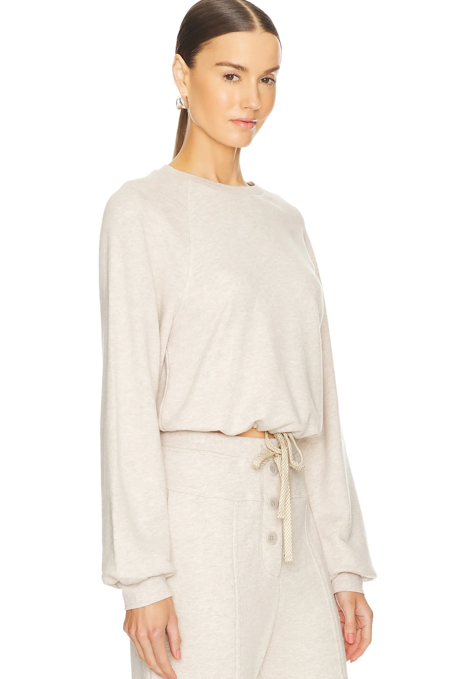 Self: 59% organic cotton 41% bamboo viscose Combo: 56% organic cotton 39% bamboo viscose 5% elastane.Made in Turkey.Machine wash.Pull-on styling.Drawstring waist.Item not sold as a set.Fleece fabric