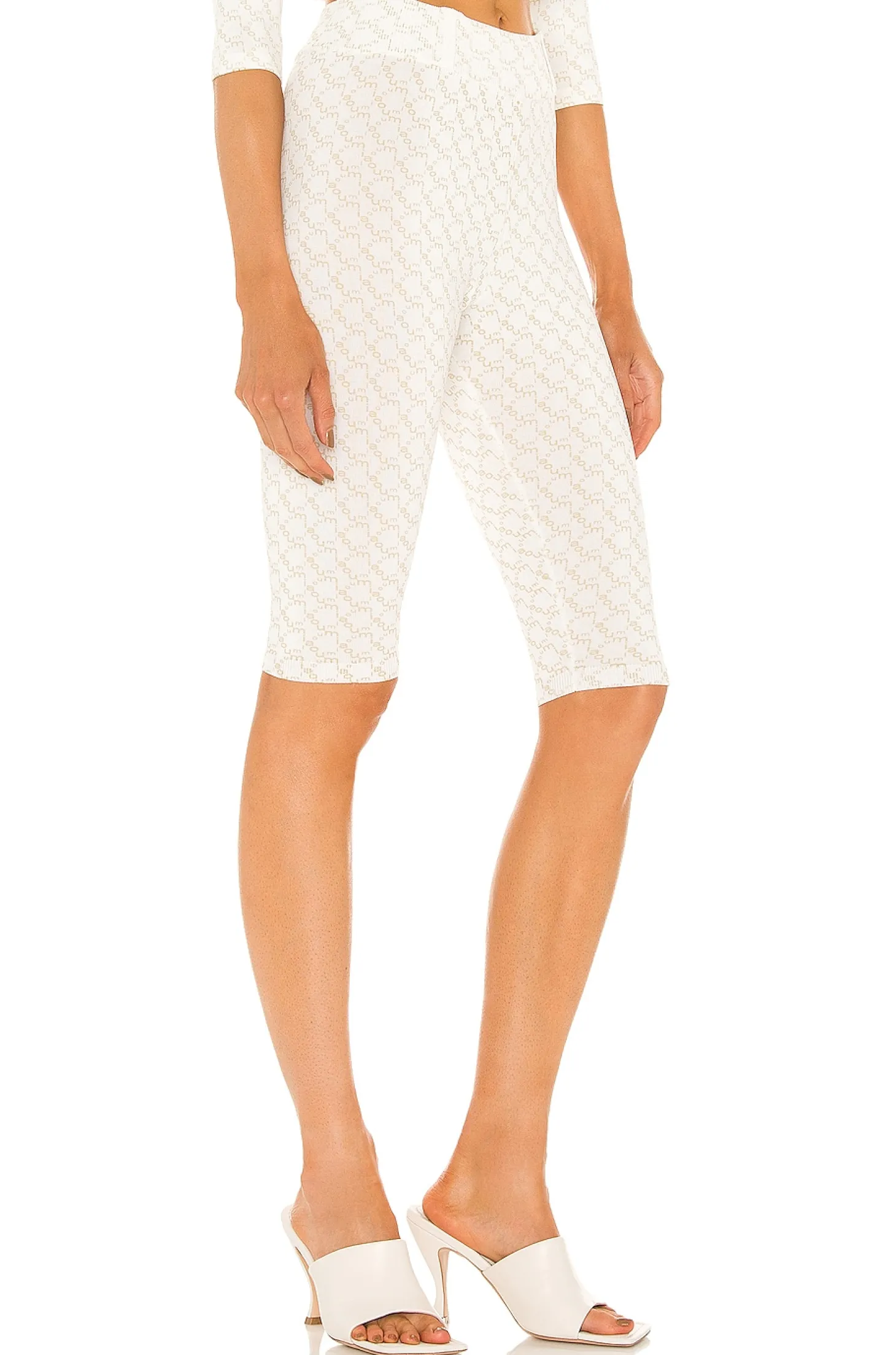 63% viscose 37% nylon.Made in China.Dry Clean.Elastic waistband.Belt loops.Knit stretch fabric with logo detail throughout.Item not sold as a set.Shorts measure approx 22" in length
