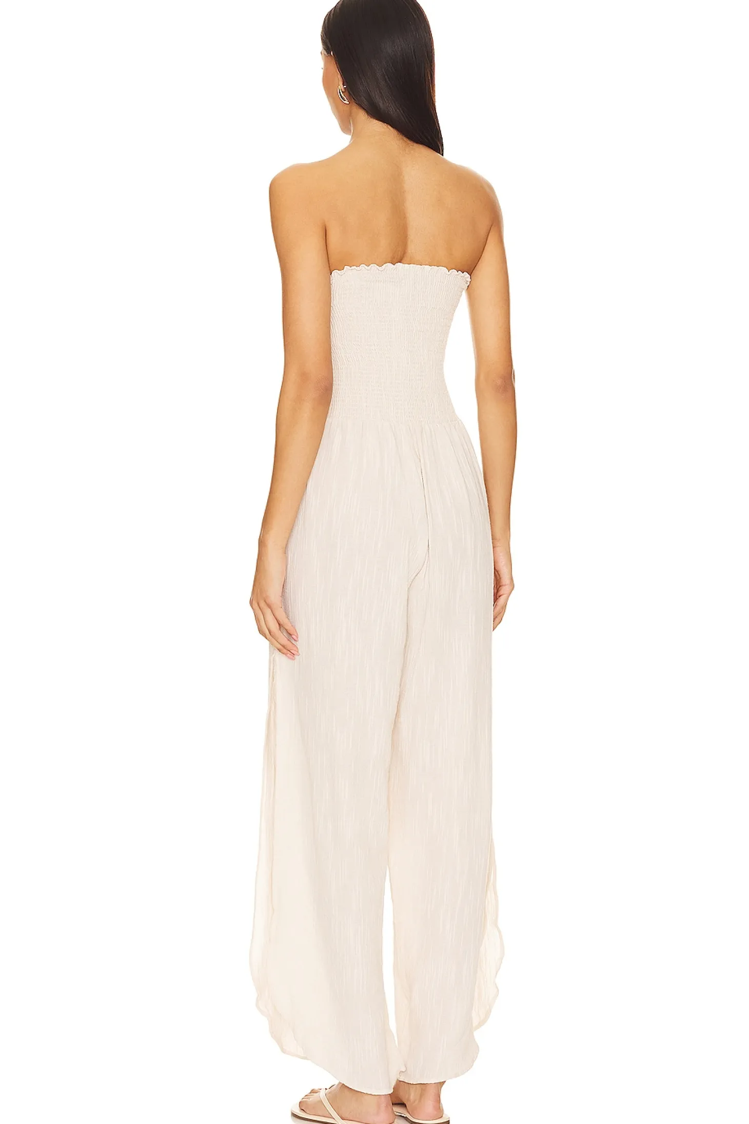 Body and Corps: 100% cotton.Made in Colombia.Hand wash.Pull-on styling.Smocked elastic bodice.Side seam pockets.Linen fabric with side slits.Neckline to hem measures approx 50" in length 26" at the knee breaks to 38" at the leg opening