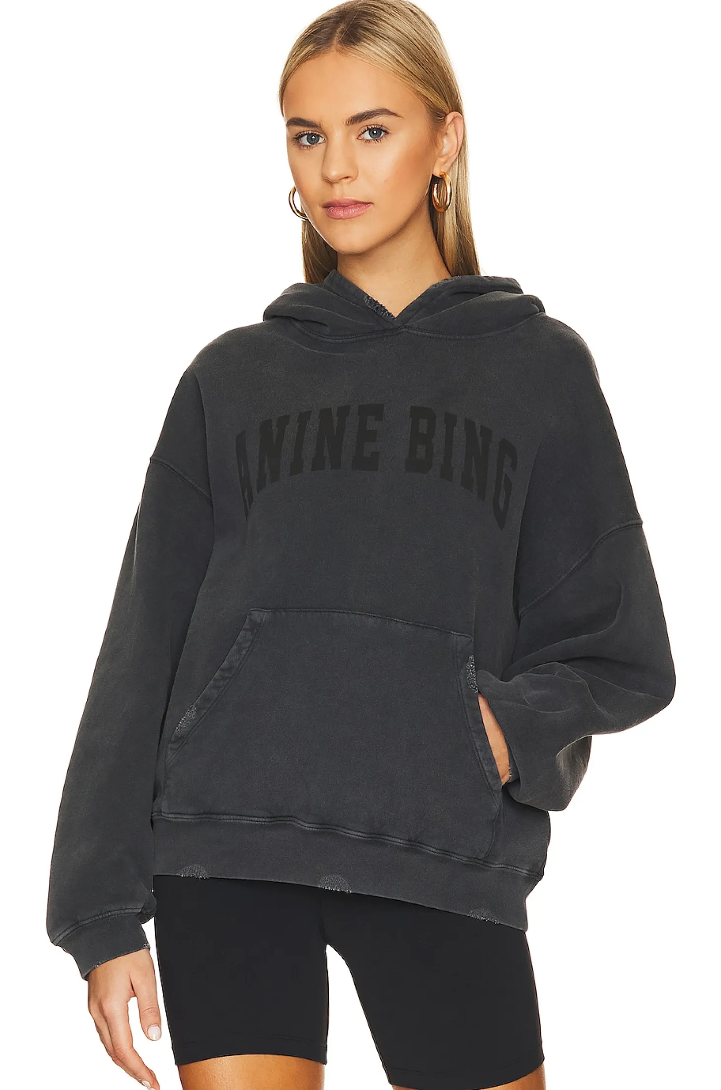 100% organic cotton.Made in Turkey.Machine wash.Front 'Anine Bing' logo.Front kangaroo pocket.Light whiskering detail throughout