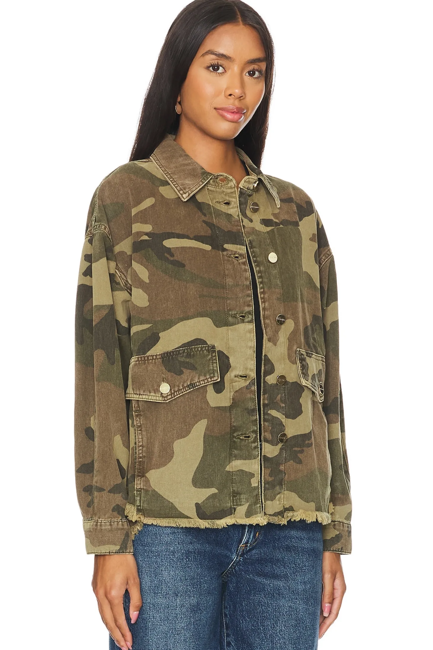50% cotton 50% organic cotton.Made in Turkey.Machine wash.Front button closure.Faux front cargo pocket.Buttoned cuffs.Twill fabric with curved hem and fringe