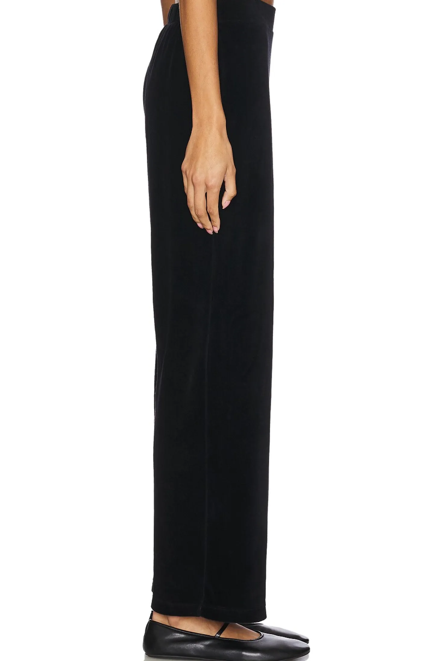 88% cotton 14% polyester.Made in USA.Hand wash.Pull-on styling.Elasticized waistband.Midweight velour fabric Item not sold as a set.20" at the knee narrows to 18" at the leg opening