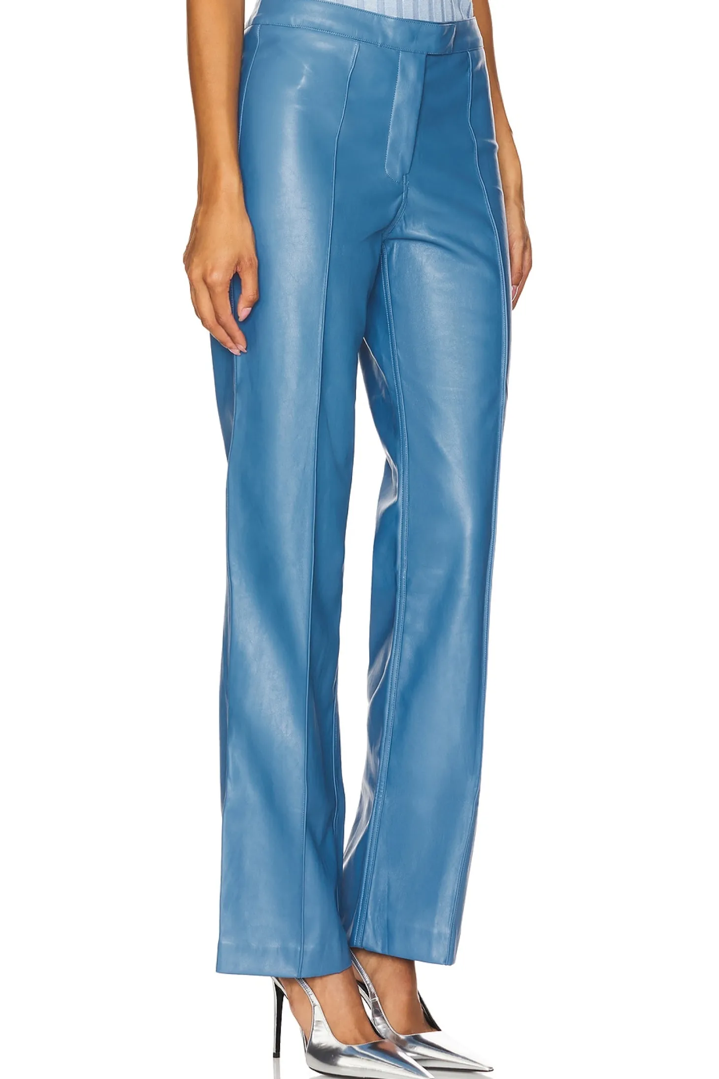 70% polyurethane 30% polyester.Made in China.Hand wash.Zip fly with snap button closure.8.5" at the knee and 9" at the leg opening