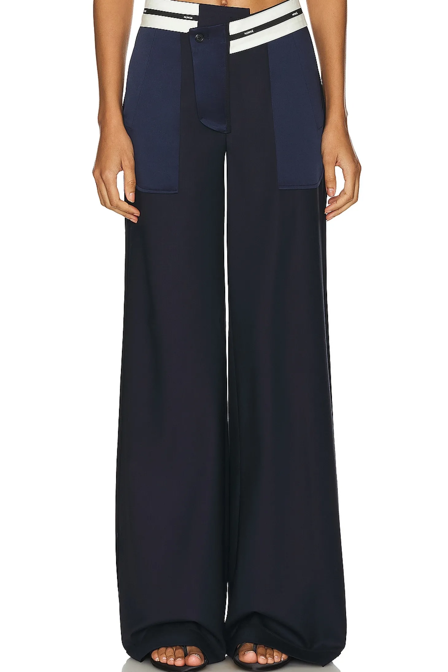 95% virgin wool 5% elastane.Made in China.Dry clean only.22" at the knee breaks to 26" at the leg opening