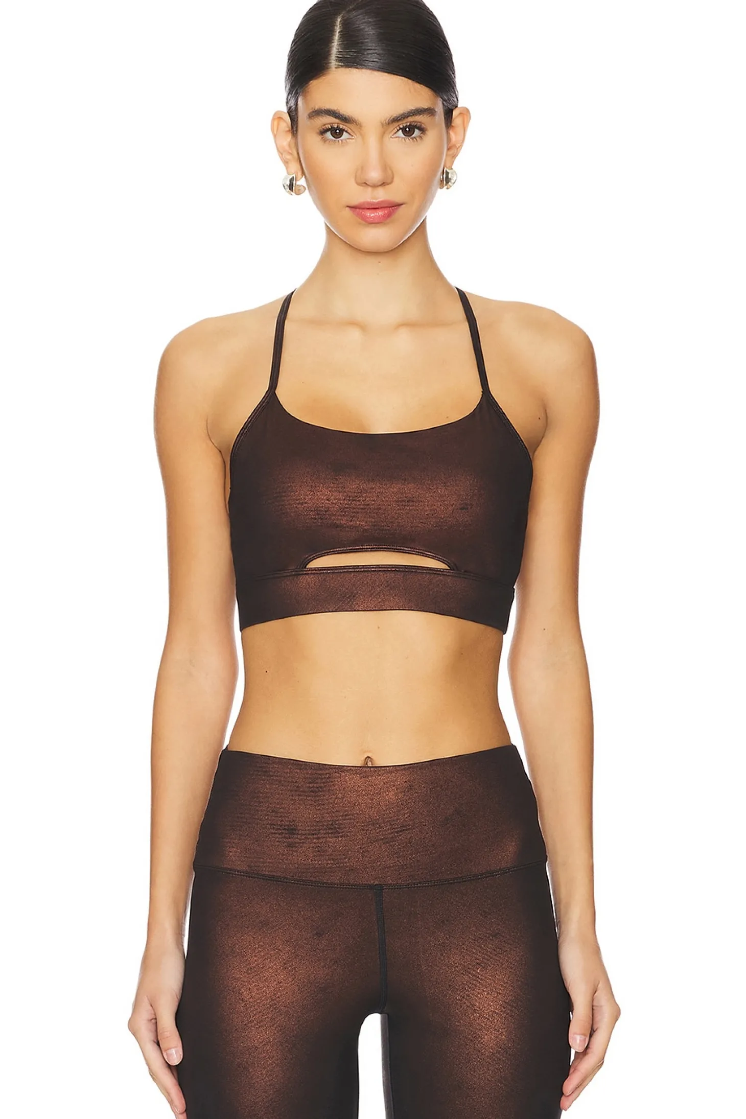 Activewear textile.Imported.Hand wash recommended.Removable padded cups.Cut-out accent at front and back.Coated metallic fabric.Item not sold as a set