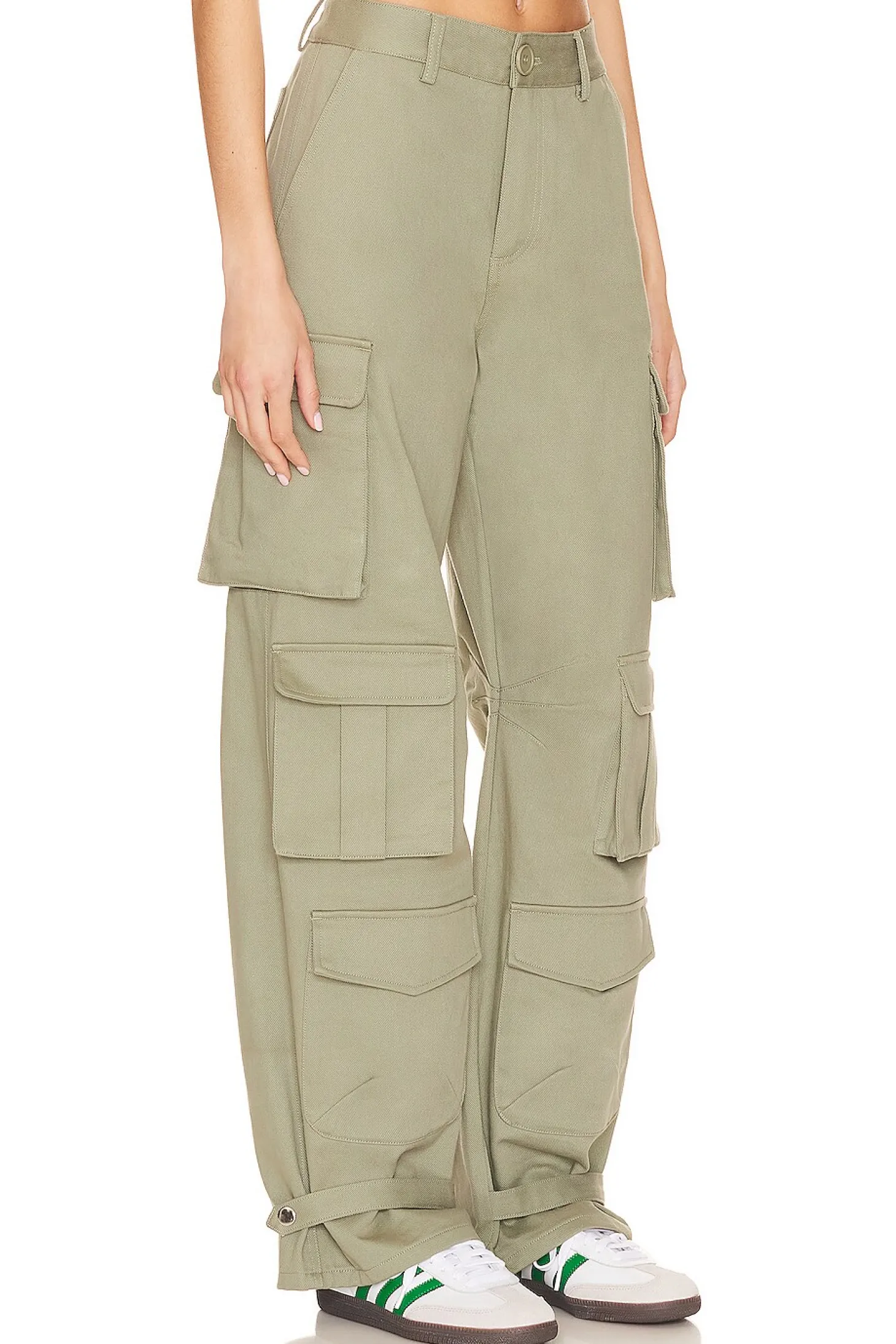 Own the urban jungle in Lovers and Friends Issa Pant in Army Green. Crafted from twill, these cargo pants elevate street style. Casual meets trendy with a wide leg, style them low rise for that extra flair. Functional yet stylish, these pants exude Kim Possible vibes. Conquer the streets in confidence..Self: 100% cotton Lining: 100% rayon.Made in China.Hand wash.Zip fly with button closure.4-pocket styling.Cargo pocket styling Twill fabric.18.5" at the knee narrows to 16" at the leg opening