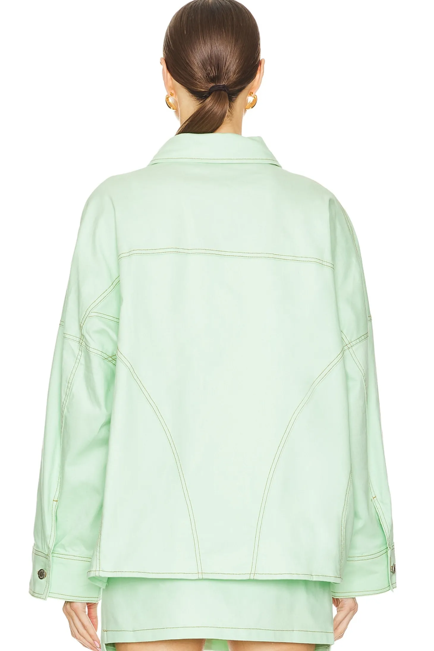 65% cotton 32% polyester 3% elastane.Made in China.Hand wash.Front button closure.Breast pockets and.Side pockets.Buttoned cuffs.Item not sold as set