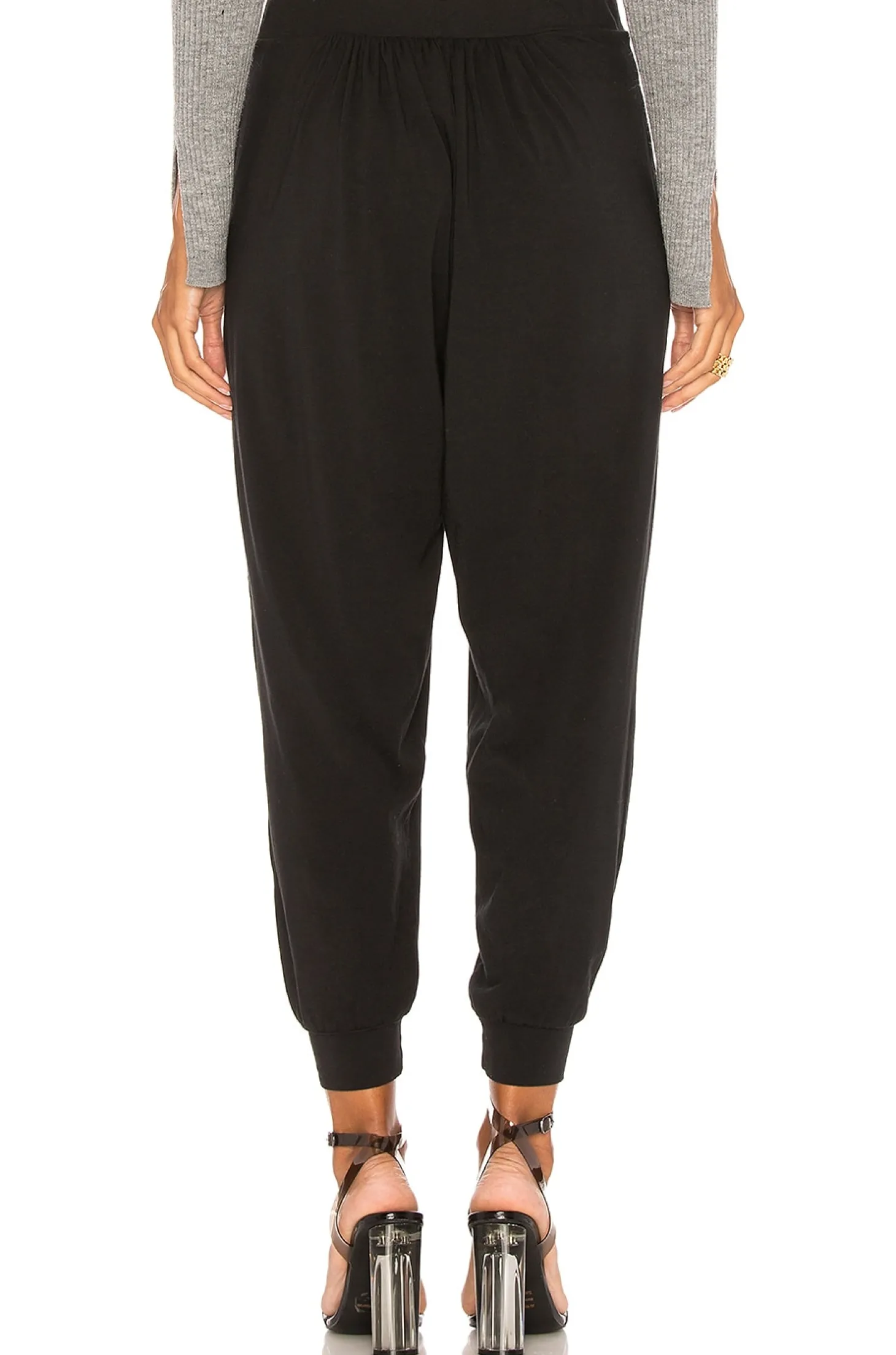 54% cotton 44% modal 2% spandex.Made in China.Machine wash.Elasticized waist.Side slant pockets.Jersey knit fabric.17" at the knee narrows to 8" at the leg opening