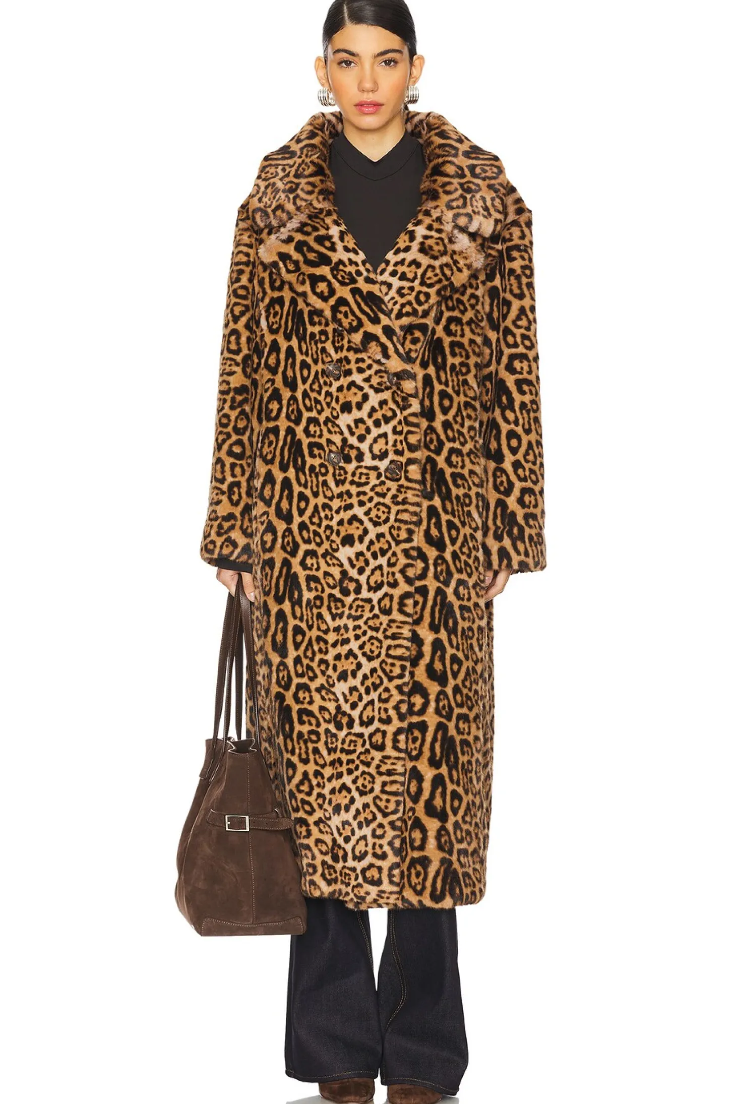 Self: Faux Fur: 100% polyester Lining: 100% polyester.Made in China.Dry clean only.Double breasted closure.Heavyweight faux fur exterior