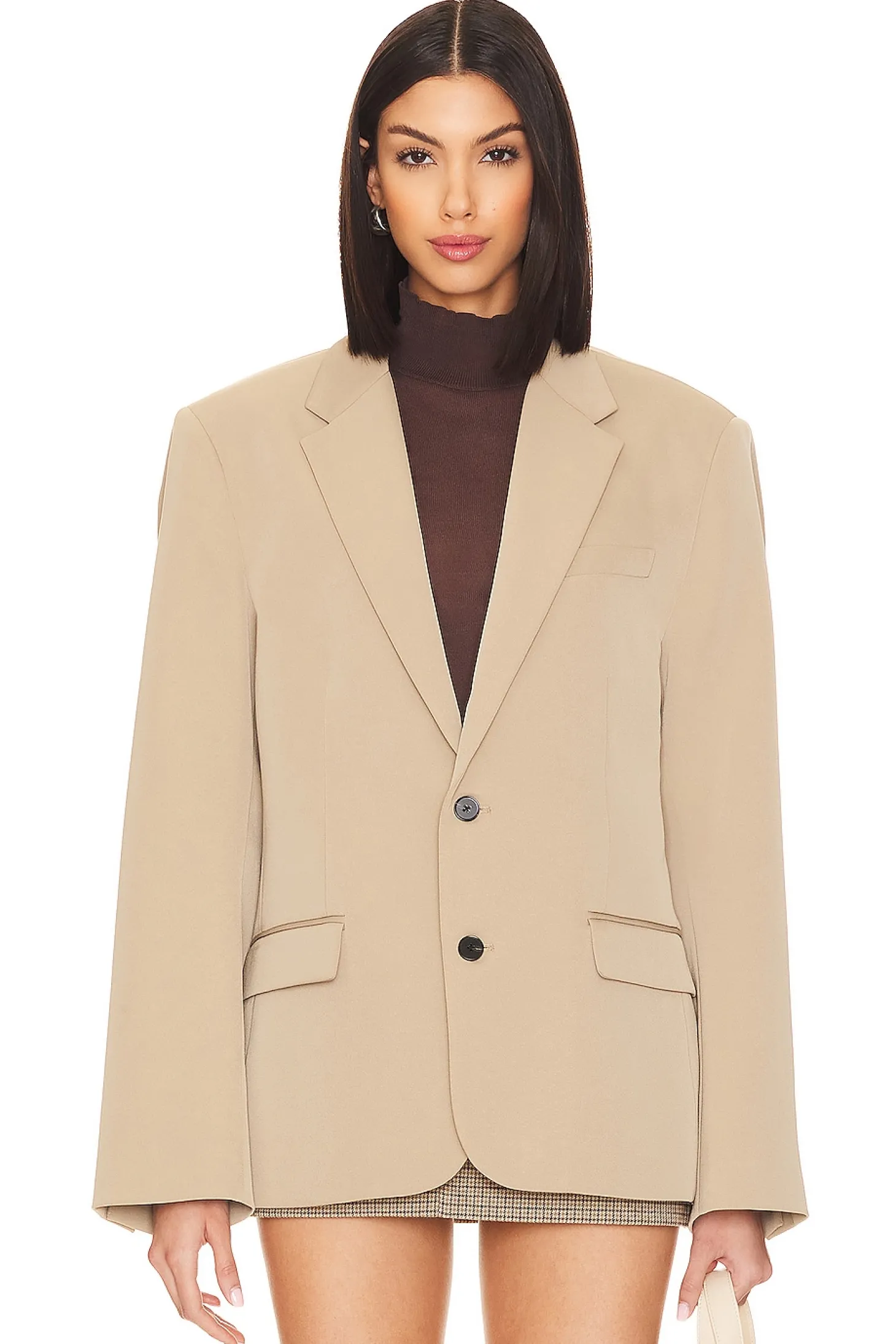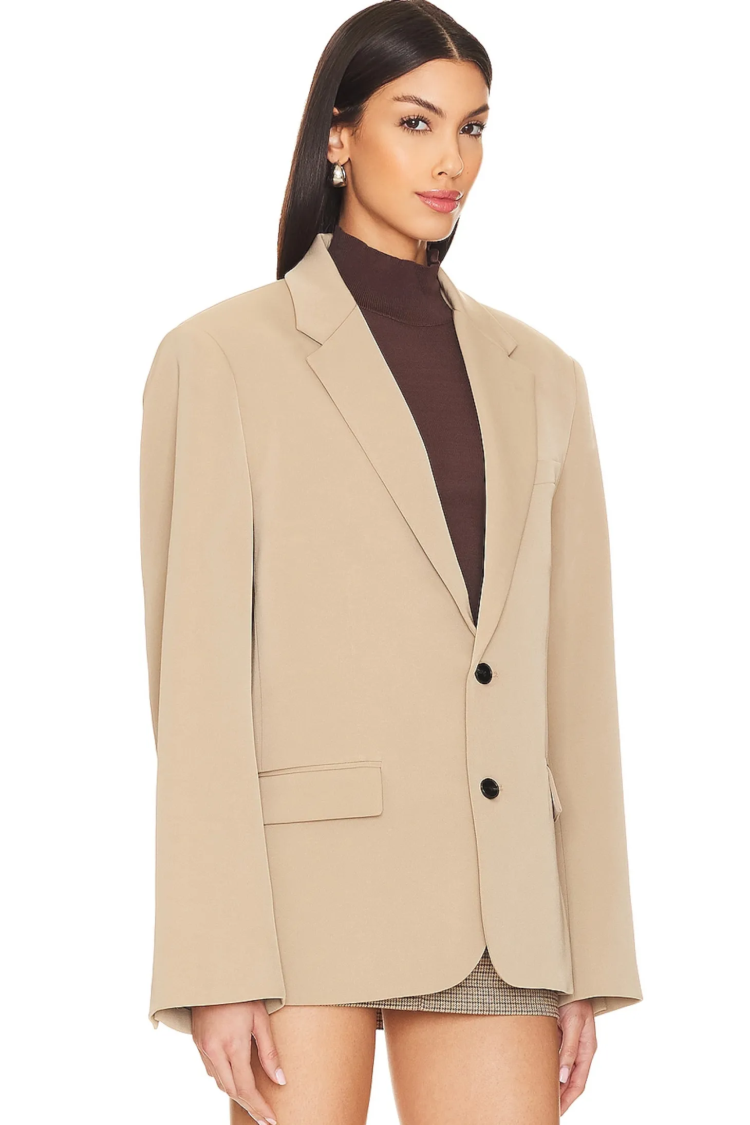 You mean business in this tailored blazer from Lovers & Friends, featured with dramatic padded shoulder for some structural flair. This sleek but so-fun number is the perfect finishing layer over a baby tee and mini skirt..Self: 97% polyester 3% spandex Lining: 100% polyester.Made in China.Dry clean only.Front button closure.Welt pocket at breast.Side flap pockets.Padded shoulders with buttoned cuffs