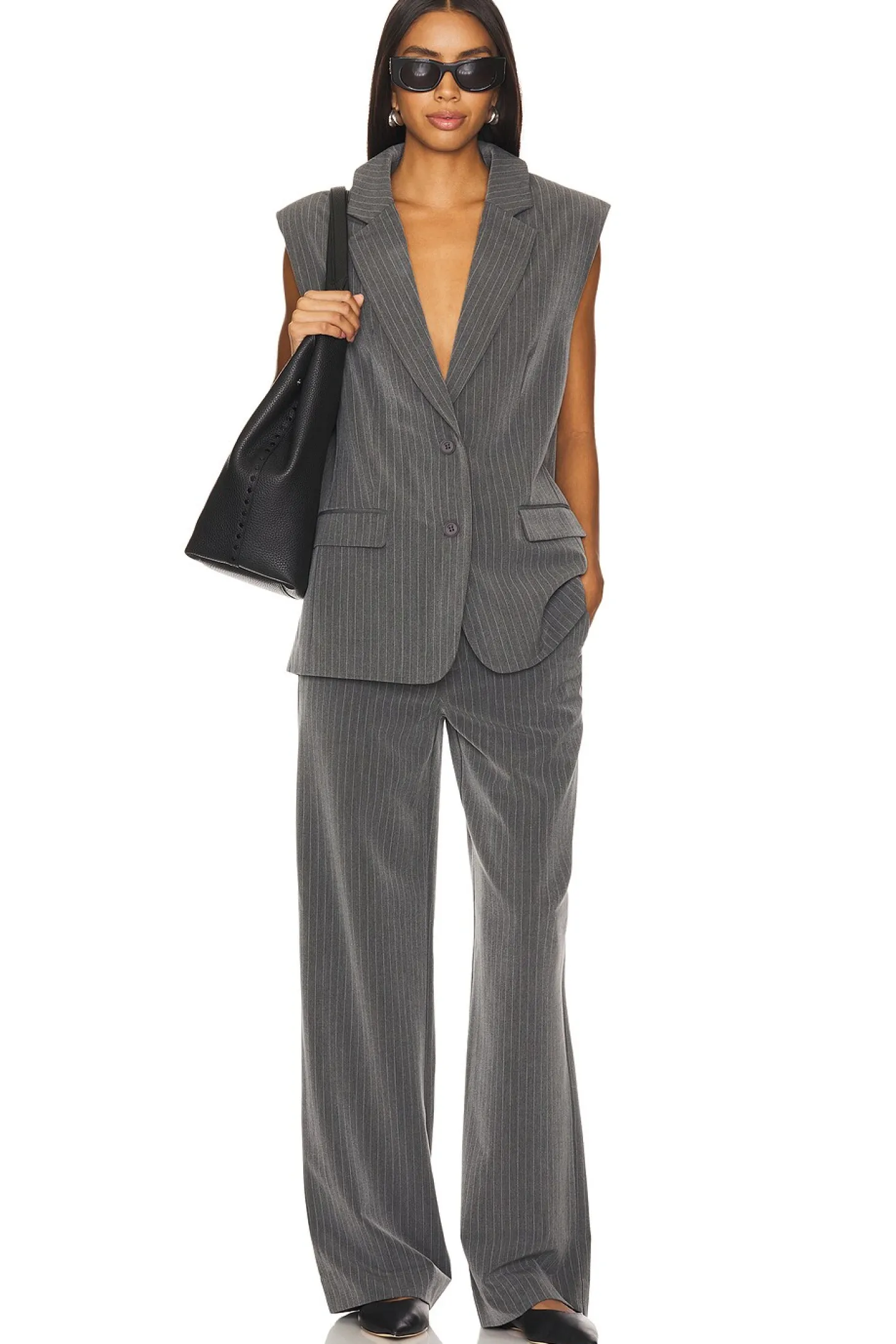 50% recycled polyester 29% polyester 18% viscose 3% elastane.Made in China.Machine wash.Zip fly with hook and bar closure.Side slant pockets and singular back welt pocket.Gabardine fabric.Item not sold as a set.20" at the knee and 20" at the leg opening