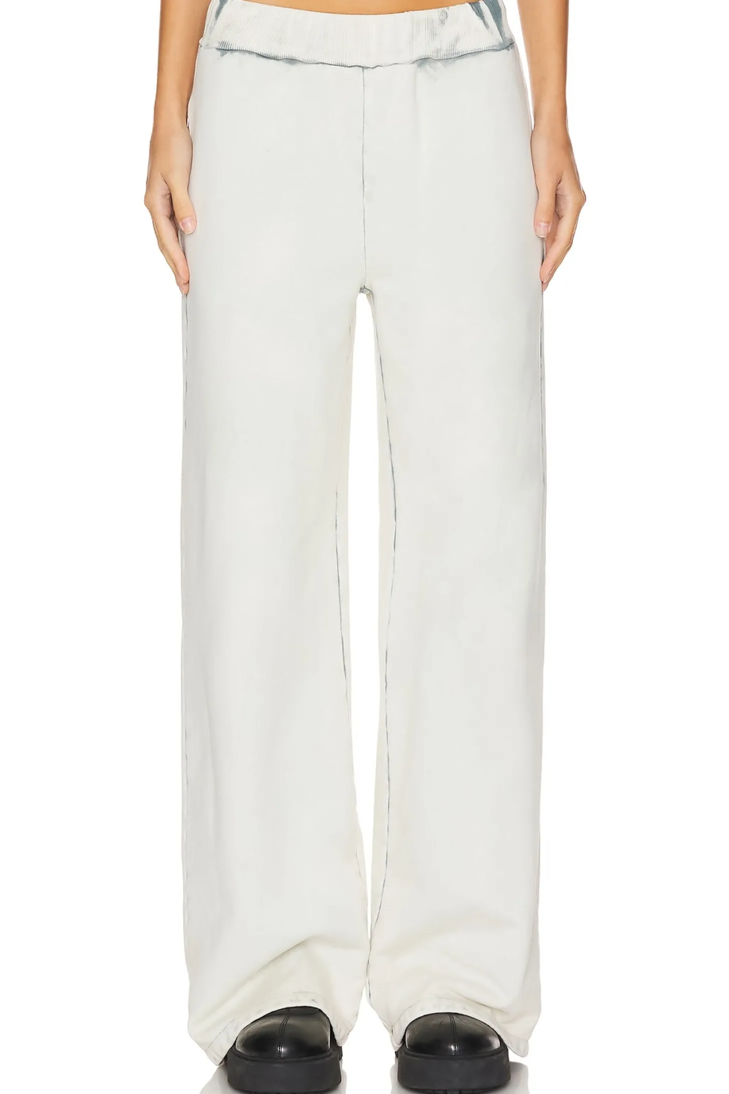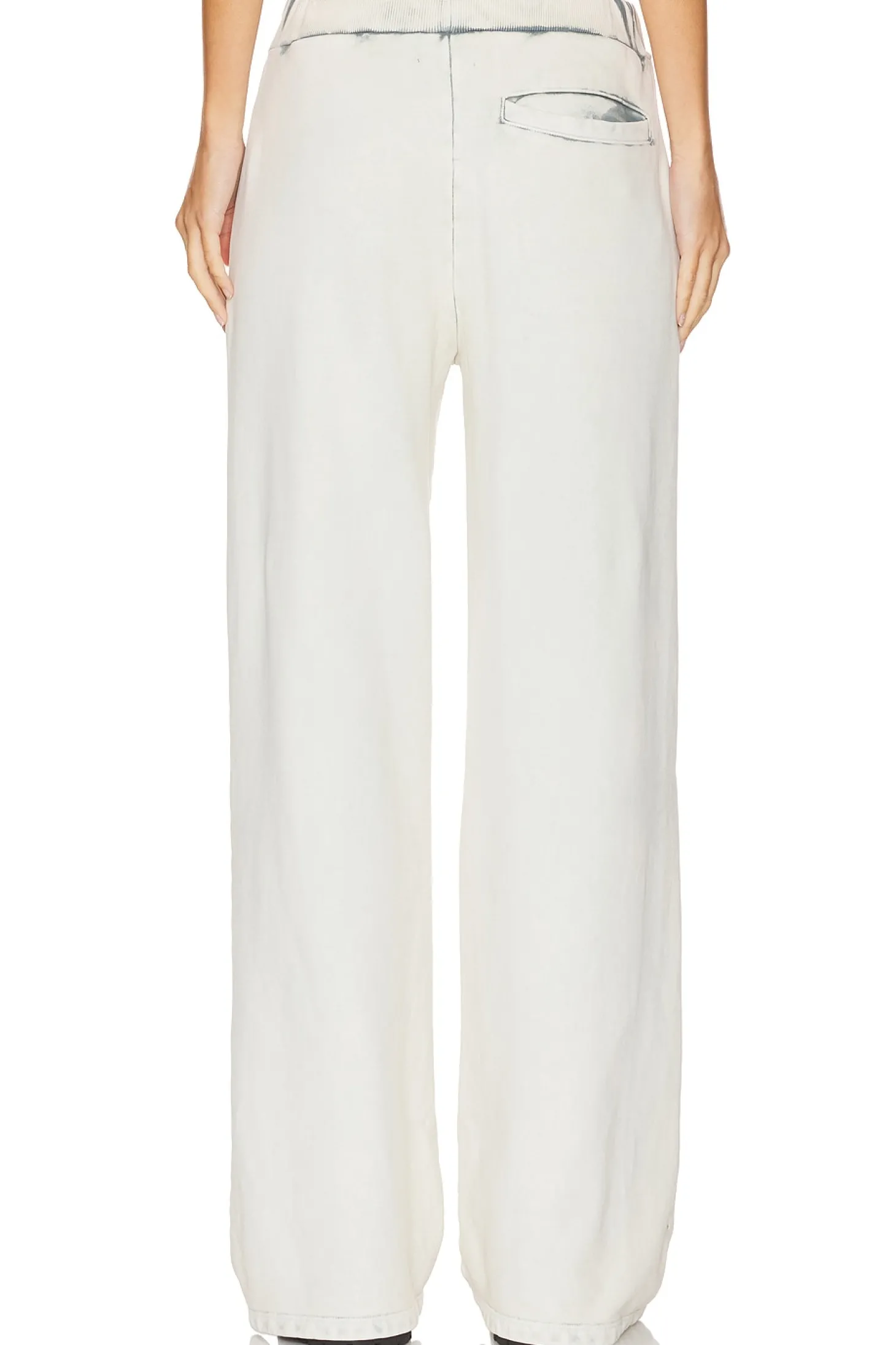 100% cotton.Made in USA.Machine wash.Pull-on styling with elastic waistband.Side slit pockets.Singular back welt pocket.French Terry fabric.22" at the knee breaks to 24" at the leg opening
