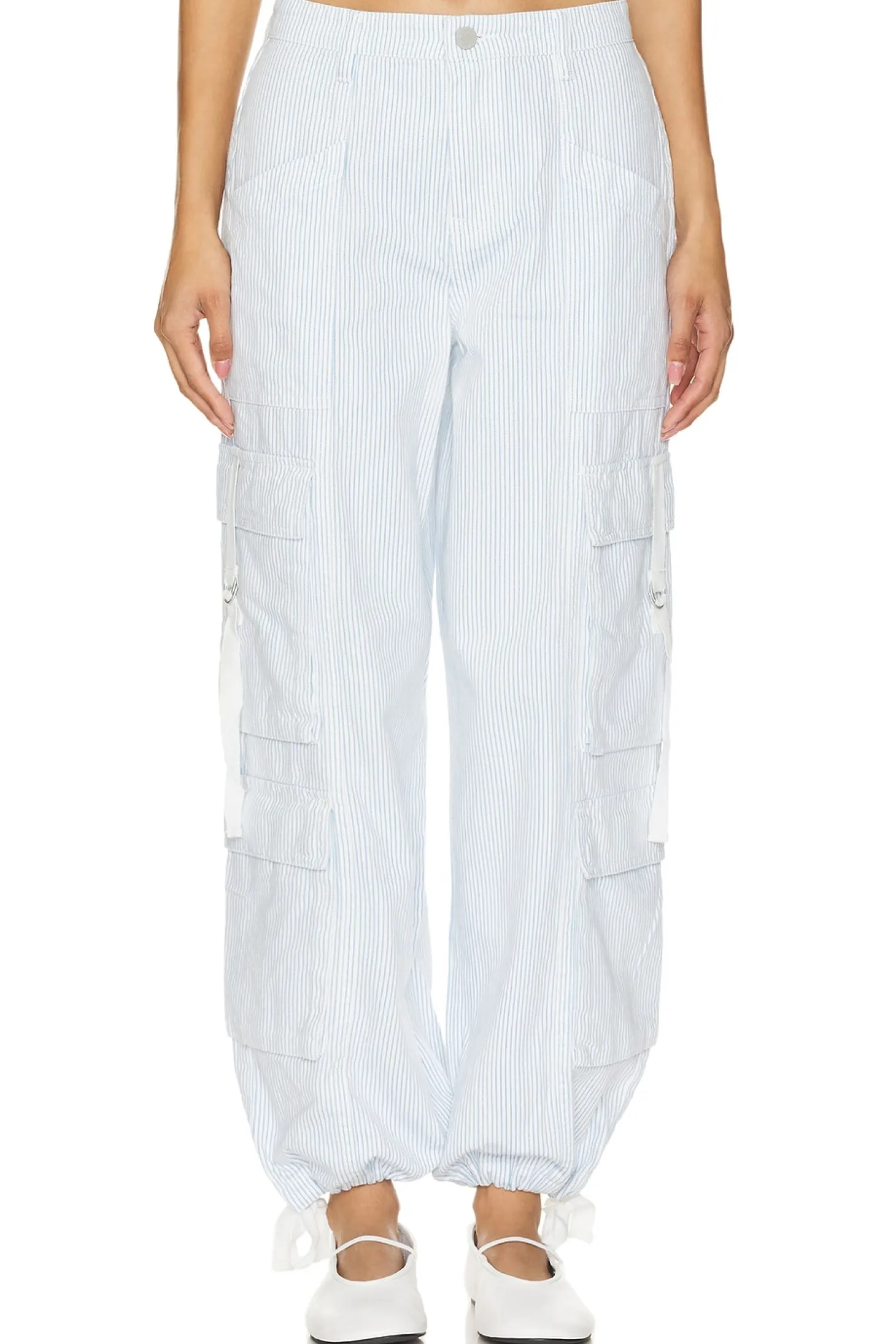 100% cotton.Made in China.Machine wash.Zip fly with button closure.4-pocket design.Cargo pockets.Drawcord cuffs.22" at the knee narrows to 20" at the leg opening