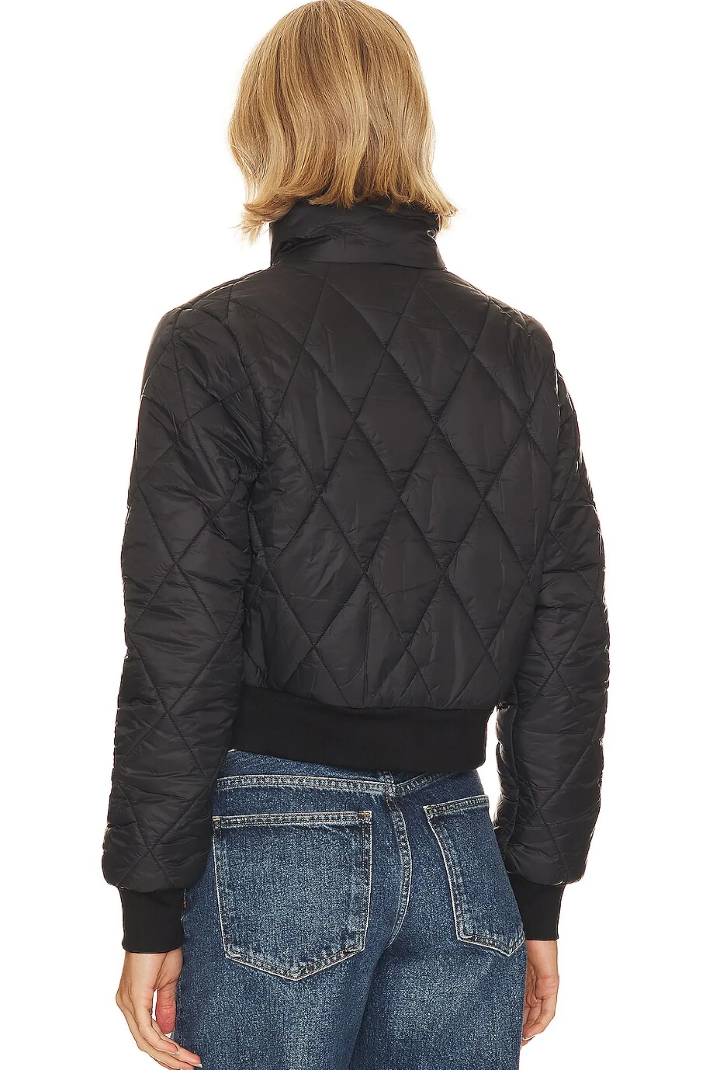 Stay cozy and stylish in fall weather with Lovers and Friends Josette Quilted Jacket. This black jacket, crafted from quilted fabric, is the perfect chic layer for the season..Self: 100% nylon Self 2: 100% polyester Trim: 95% viscose 5% spandex.Made in China.Dry clean only.Front zipper closure.Ribbed cuffs and hem.Quilted fabric