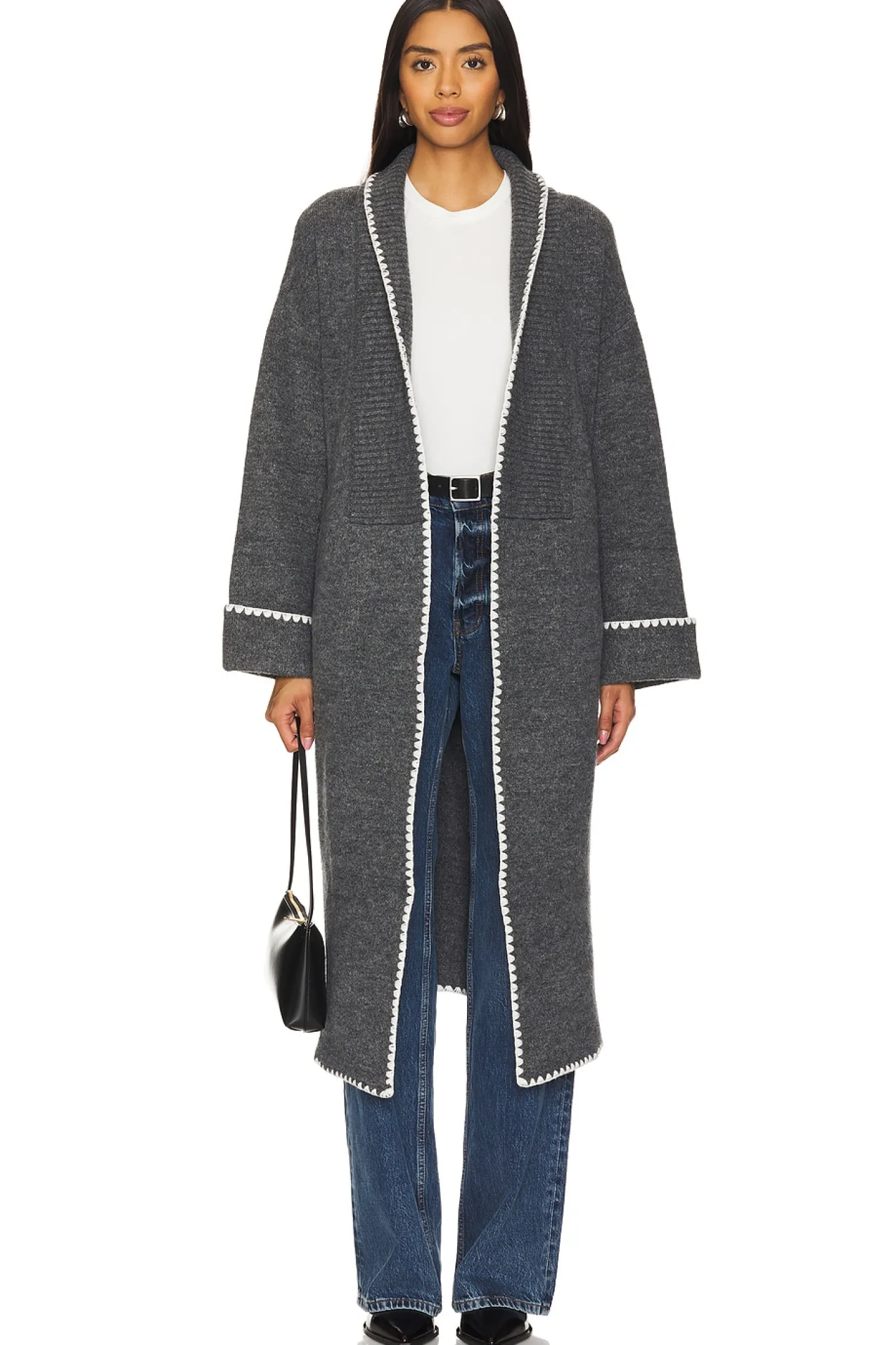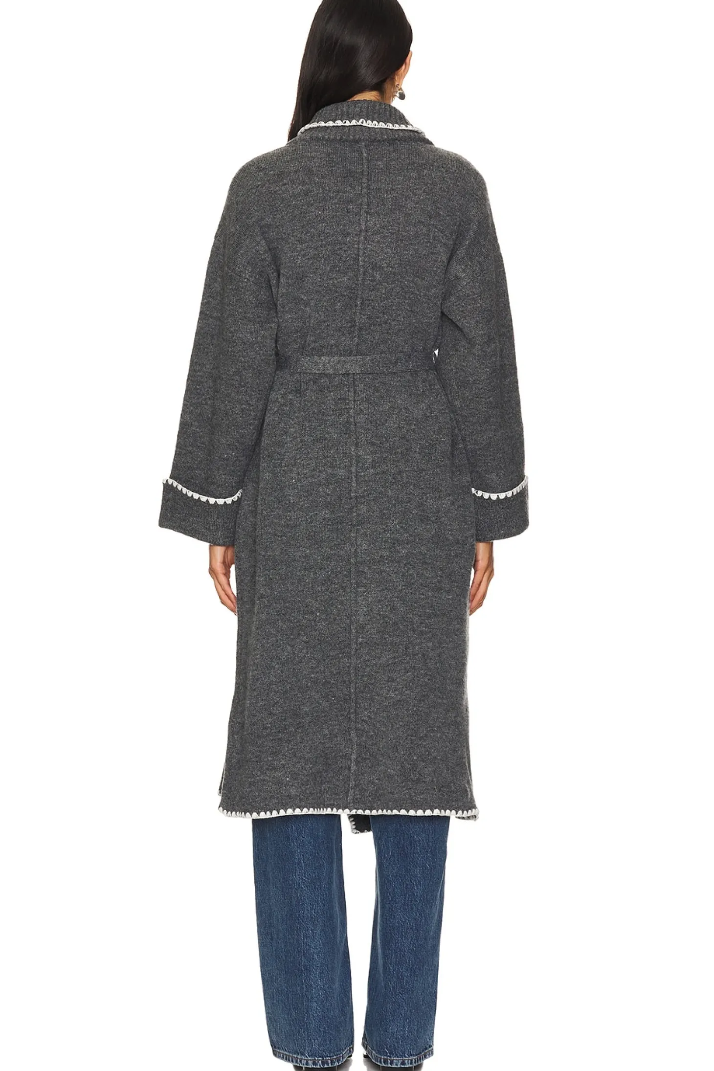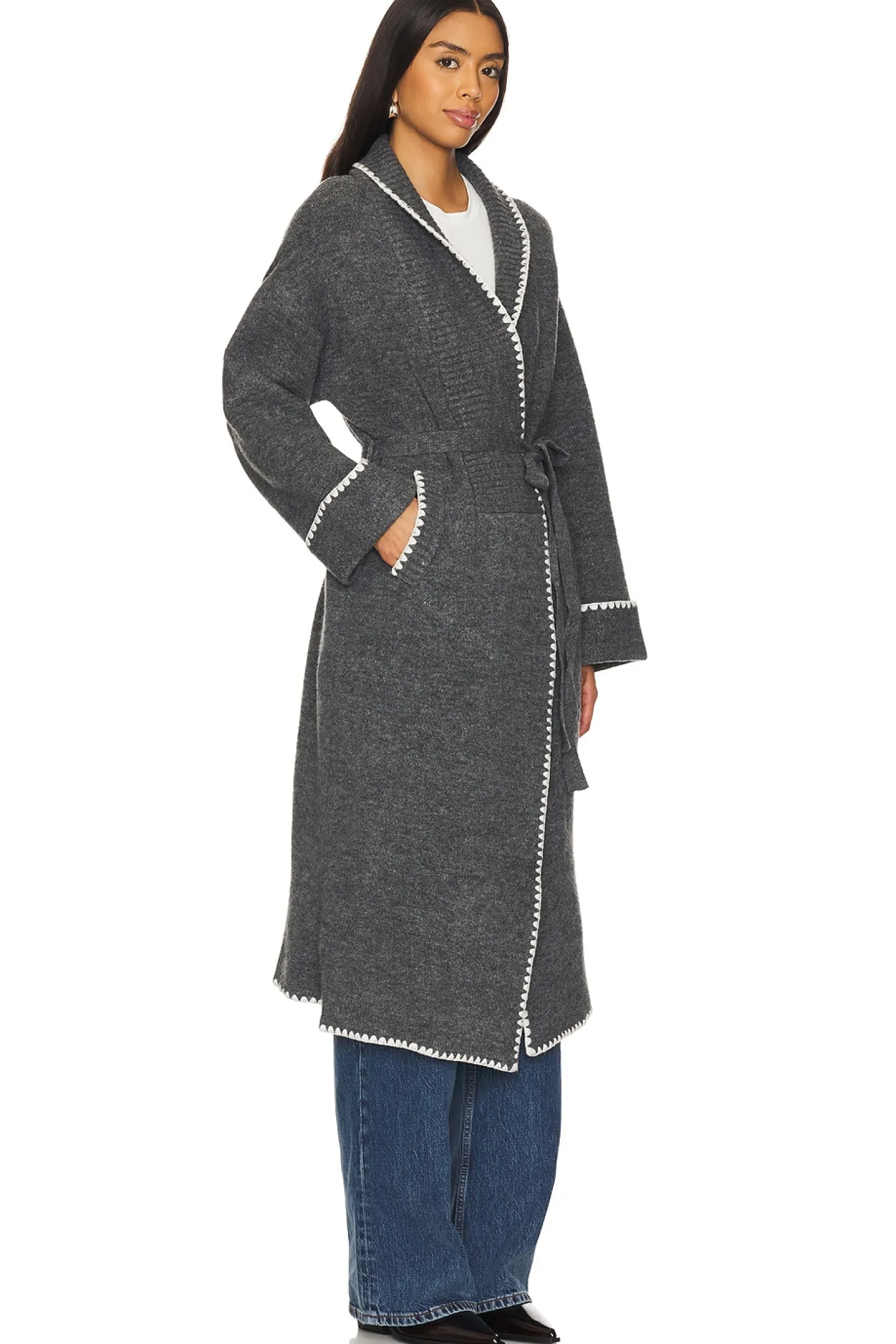 72% acrylic 22% polyester 4% spandex.Made in China.Hand wash.Adjustable waist tie closure.Side seam pockets Contrast stitch trim.Heavyweight knit fabric