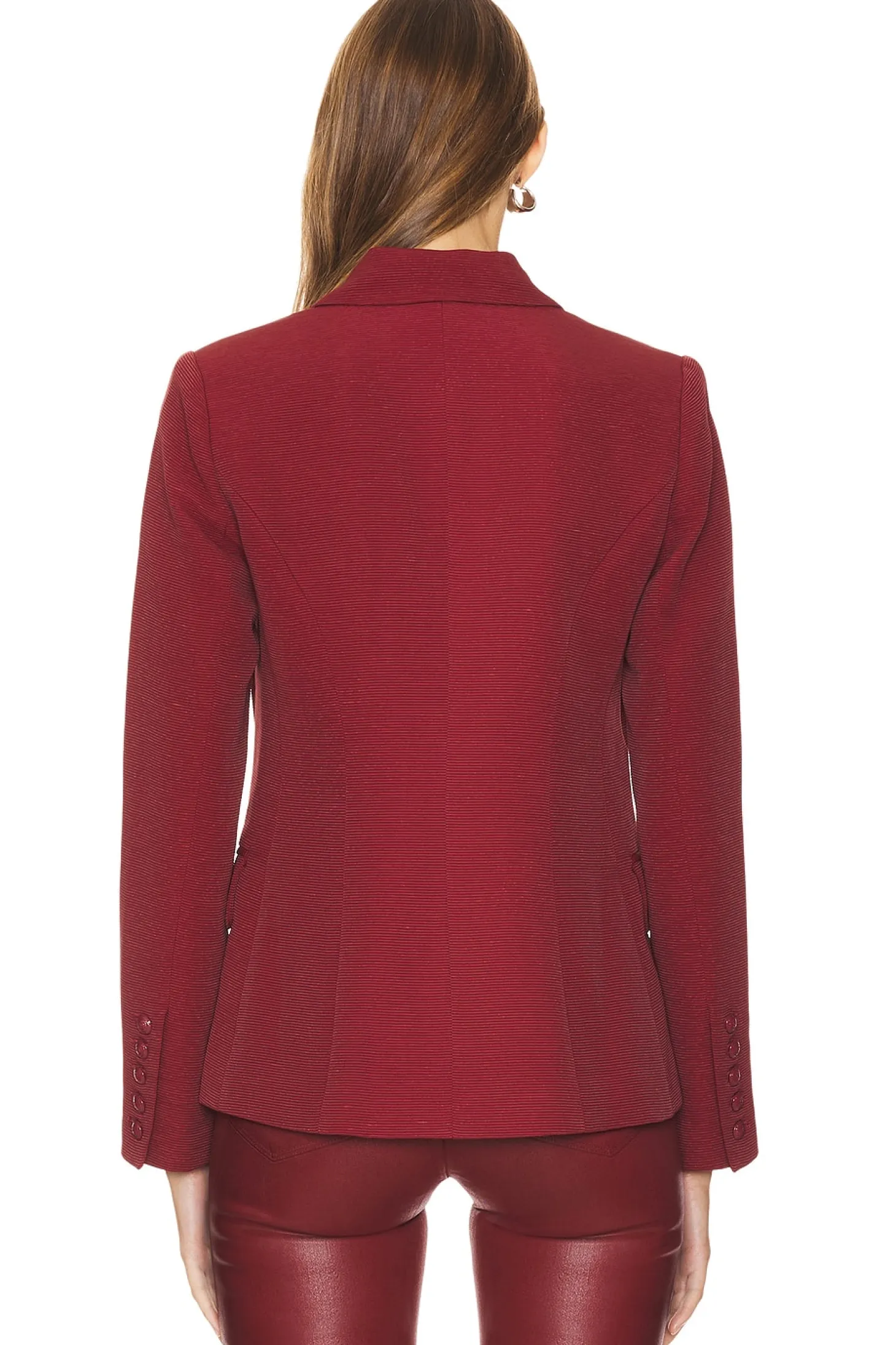Self: 76% rayon 24% nylon Lining: 100% polyester.Made in China.Dry clean.Double breasted front button closure.3-pocket styling.Twill fabric with button cuffs.Item not sold as a set