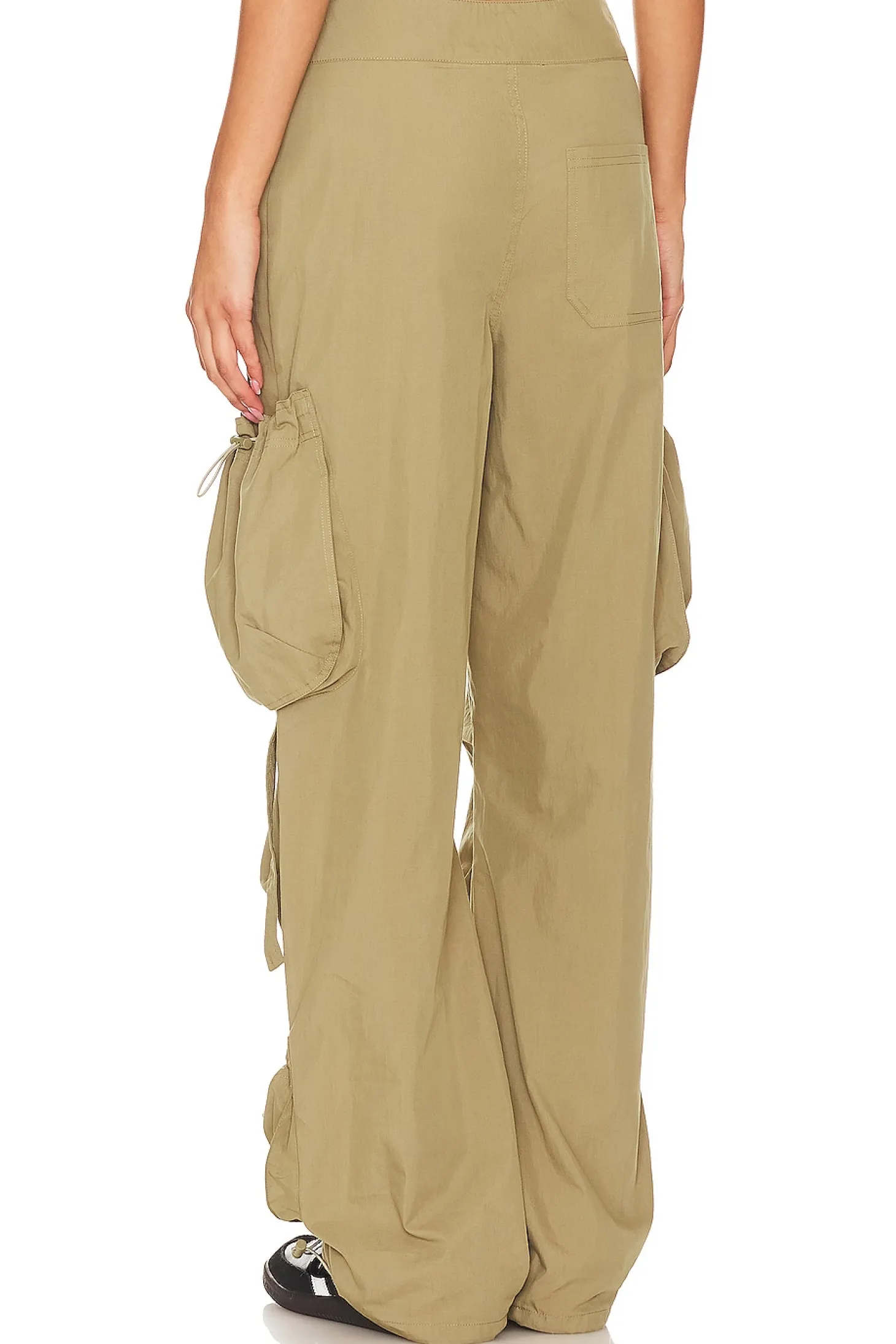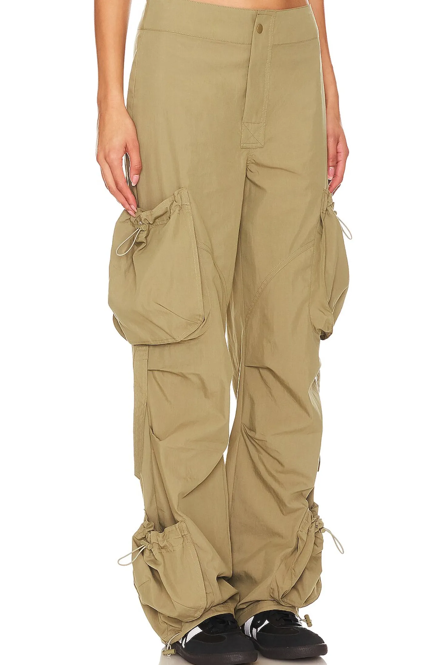 67% cotton 33% nylon.Made in China.Hand wash.Zip fly with button closure.Cargo style pockets.Drawstring closure at leg opening.Lightweight fabric.22" at the knee narrows to 18" at the leg opening