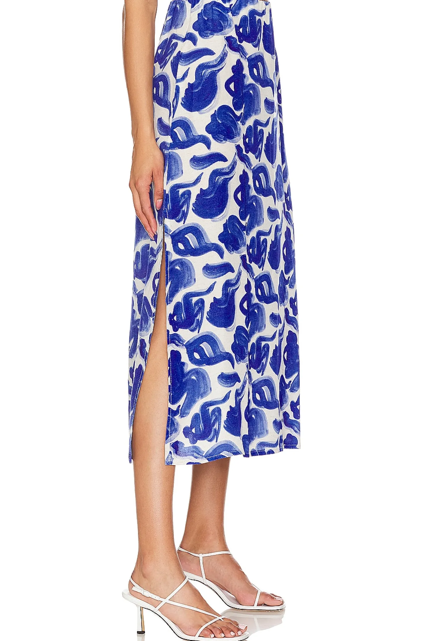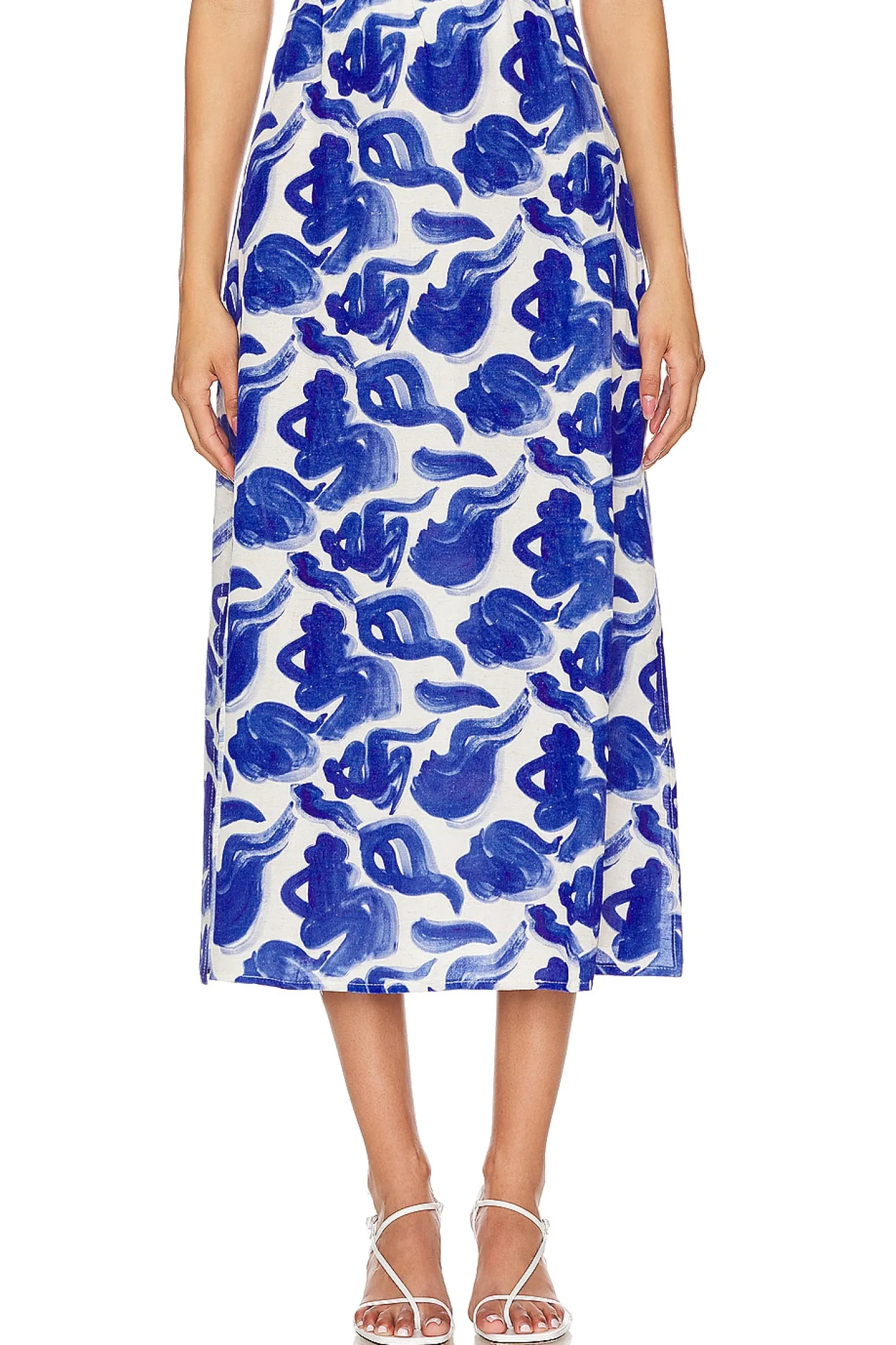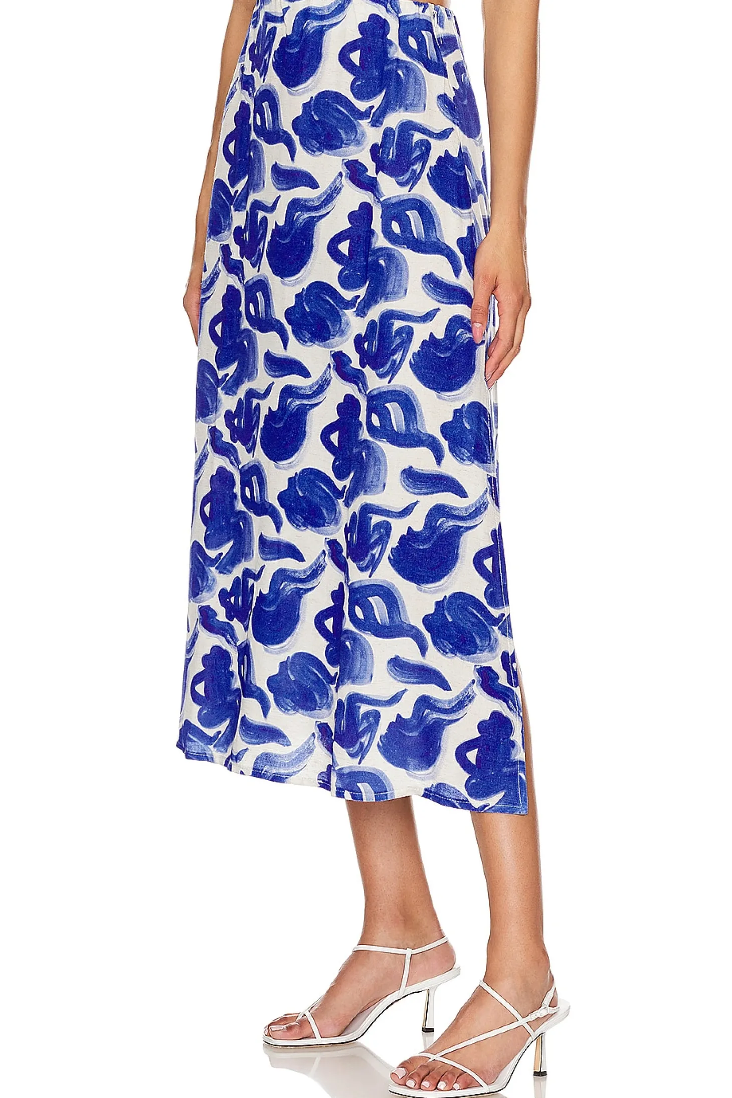 Main fabric: 73% viscose 27% linen .Made in Poland.Hand wash cold.Unlined.Hidden side zipper closure.Side seam slits.Item not sold as a set.Skirt measures approx 33.5" in length