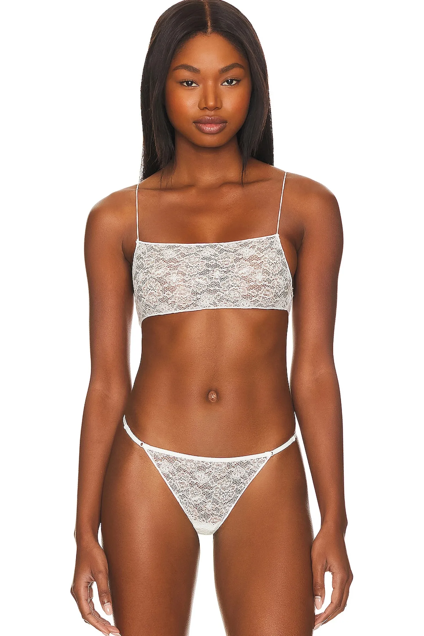 58% recycled polyamide 42% elastane.Made in Portugal.Machine wash.Unpadded.Sheer lace fabric.Item not sold as a set