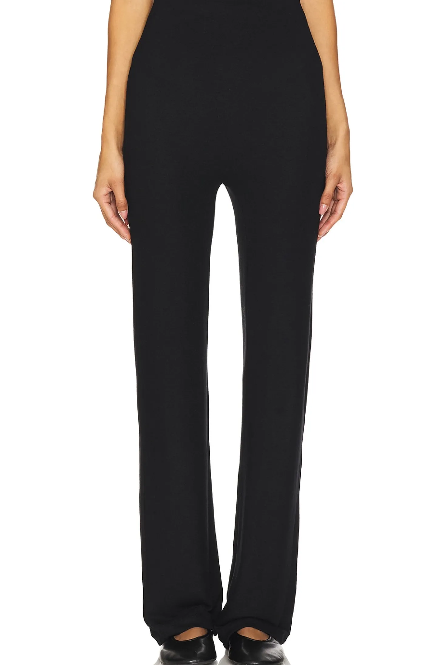 47% polyester 47% rayon 6% spandex.Made in USA.Hand wash.Pull-on styling with elastic waistband.Lightweight knit fabric.Item not sold as set.16" at the knee and 16" at the leg opening