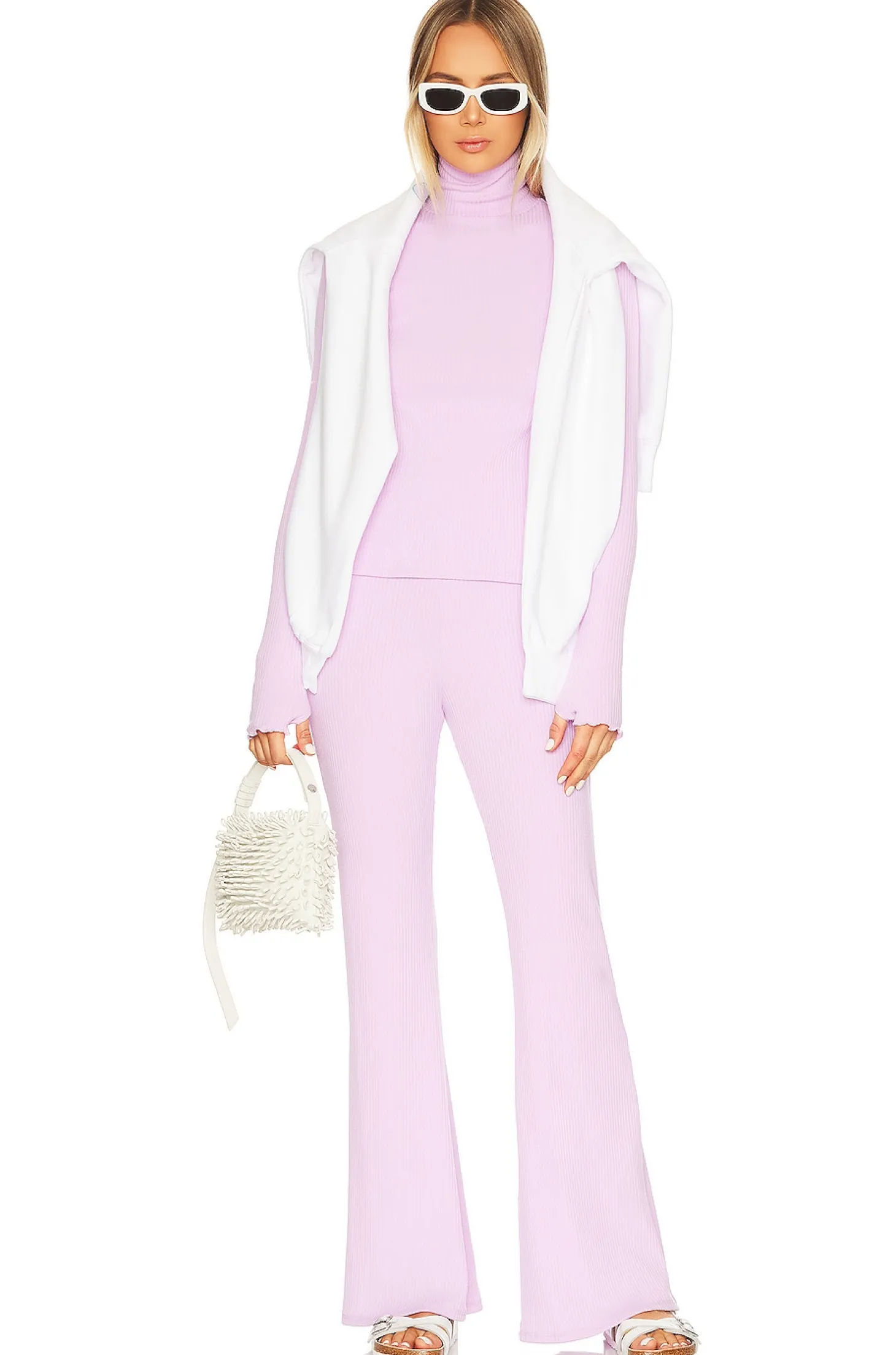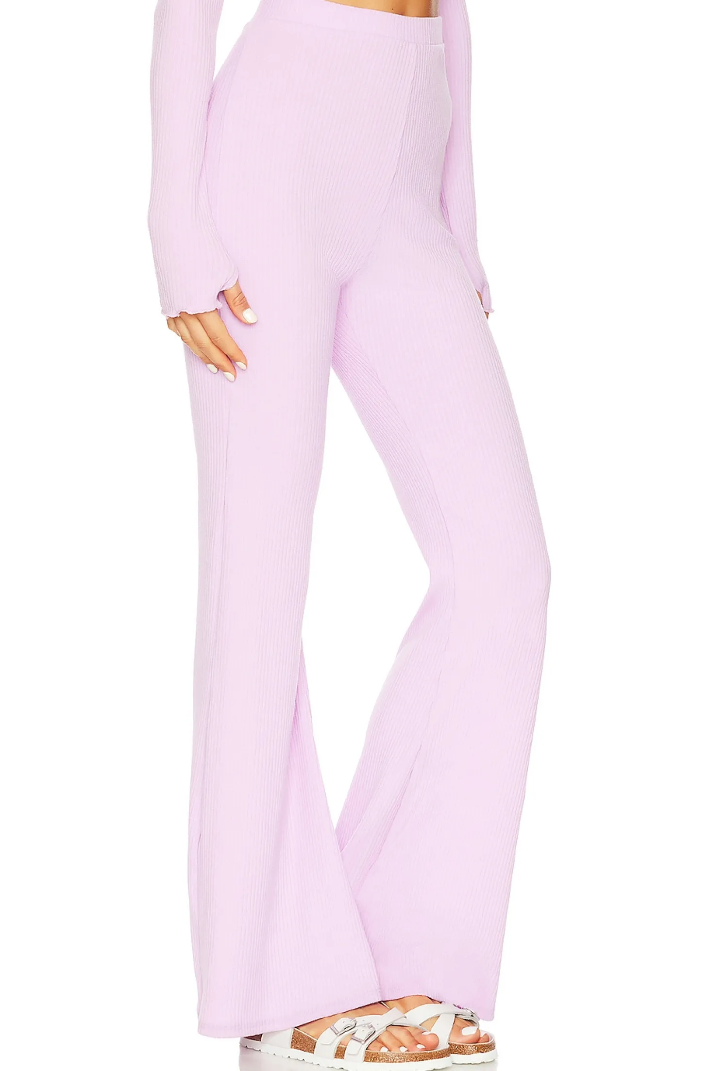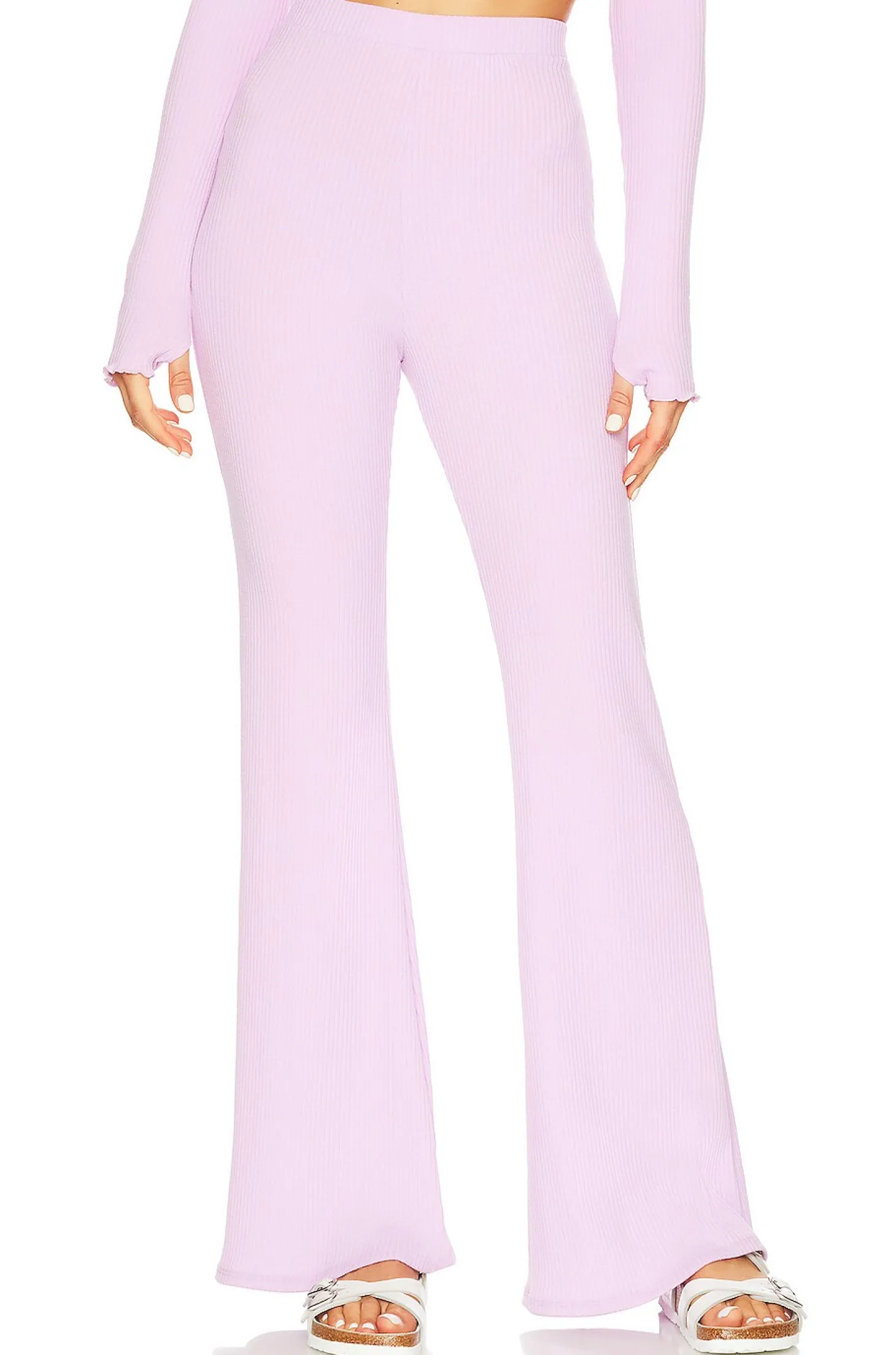 Polyester blend.Imported.Machine wash.Elastic waistband.Ribbed fabric.Item not sold as a set.14" at the knee breaks to 26" at the leg opening